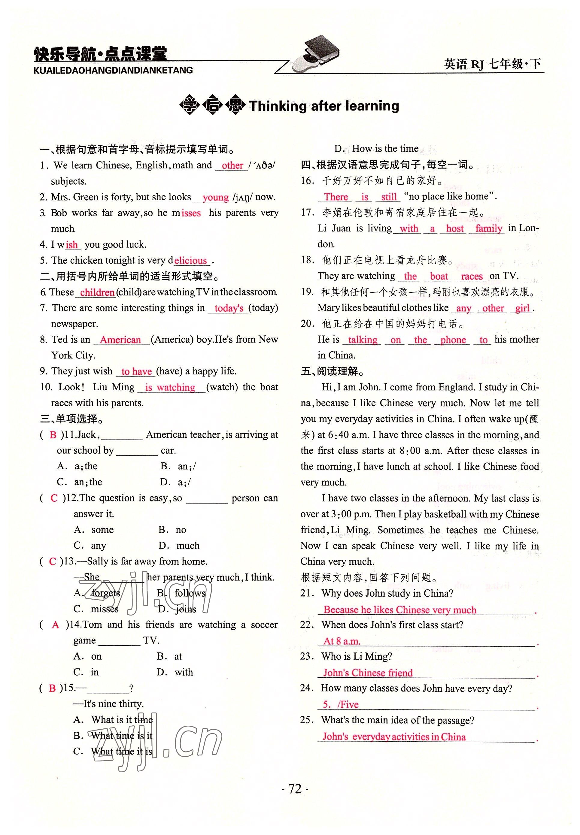 注:目前有些书本章节名称可能整理的还不是很完善,但都是按照顺序排列的,请同学们按照顺序仔细查找。练习册 2022年快乐导航点点课堂七年级英语下册人教版 答案主要是用来给同学们做完题方便对答案用的,请勿直接抄袭。