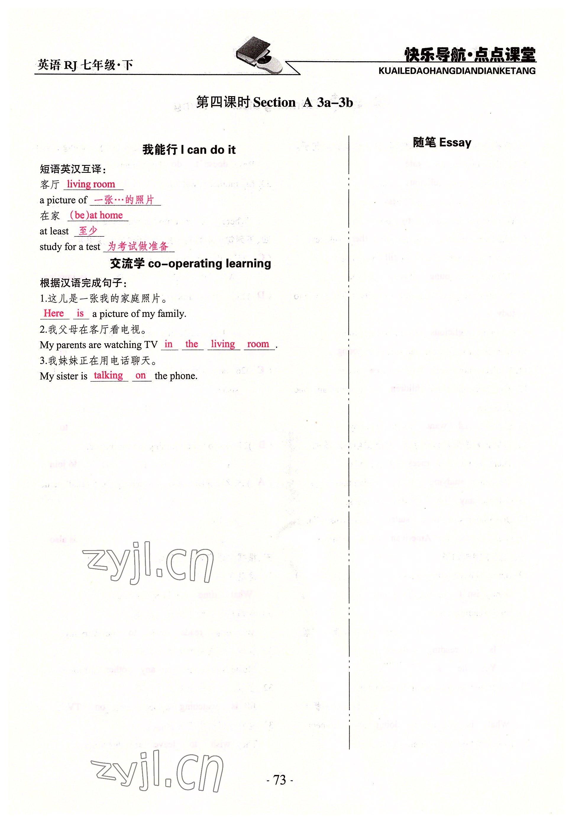 注:目前有些书本章节名称可能整理的还不是很完善,但都是按照顺序排列的,请同学们按照顺序仔细查找。练习册 2022年快乐导航点点课堂七年级英语下册人教版 答案主要是用来给同学们做完题方便对答案用的,请勿直接抄袭。