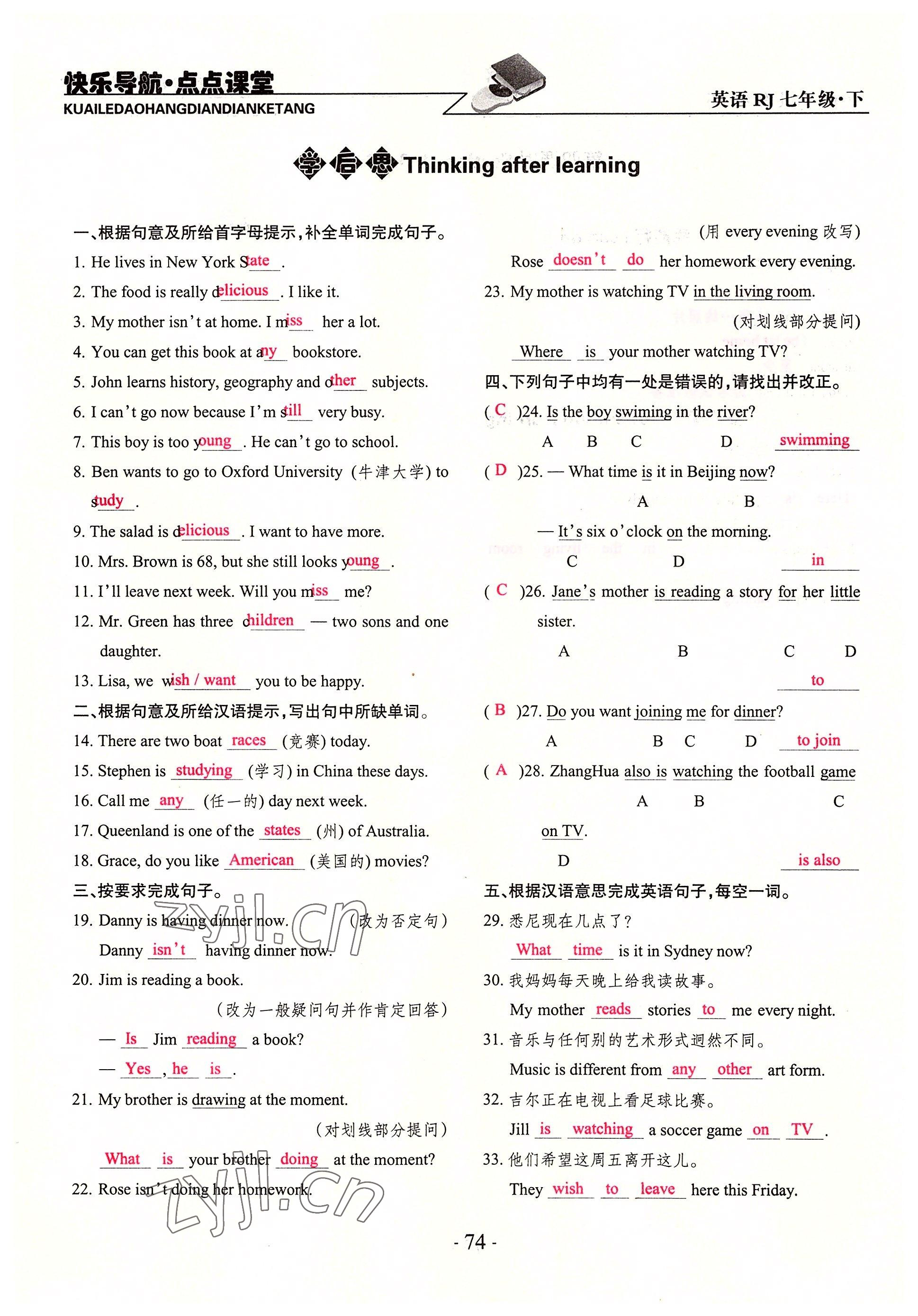 注:目前有些书本章节名称可能整理的还不是很完善,但都是按照顺序排列的,请同学们按照顺序仔细查找。练习册 2022年快乐导航点点课堂七年级英语下册人教版 答案主要是用来给同学们做完题方便对答案用的,请勿直接抄袭。
