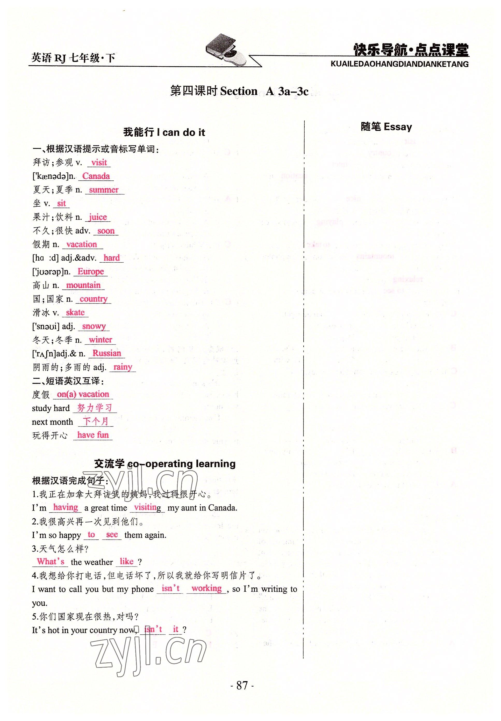 注:目前有些书本章节名称可能整理的还不是很完善,但都是按照顺序排列的,请同学们按照顺序仔细查找。练习册 2022年快乐导航点点课堂七年级英语下册人教版 答案主要是用来给同学们做完题方便对答案用的,请勿直接抄袭。