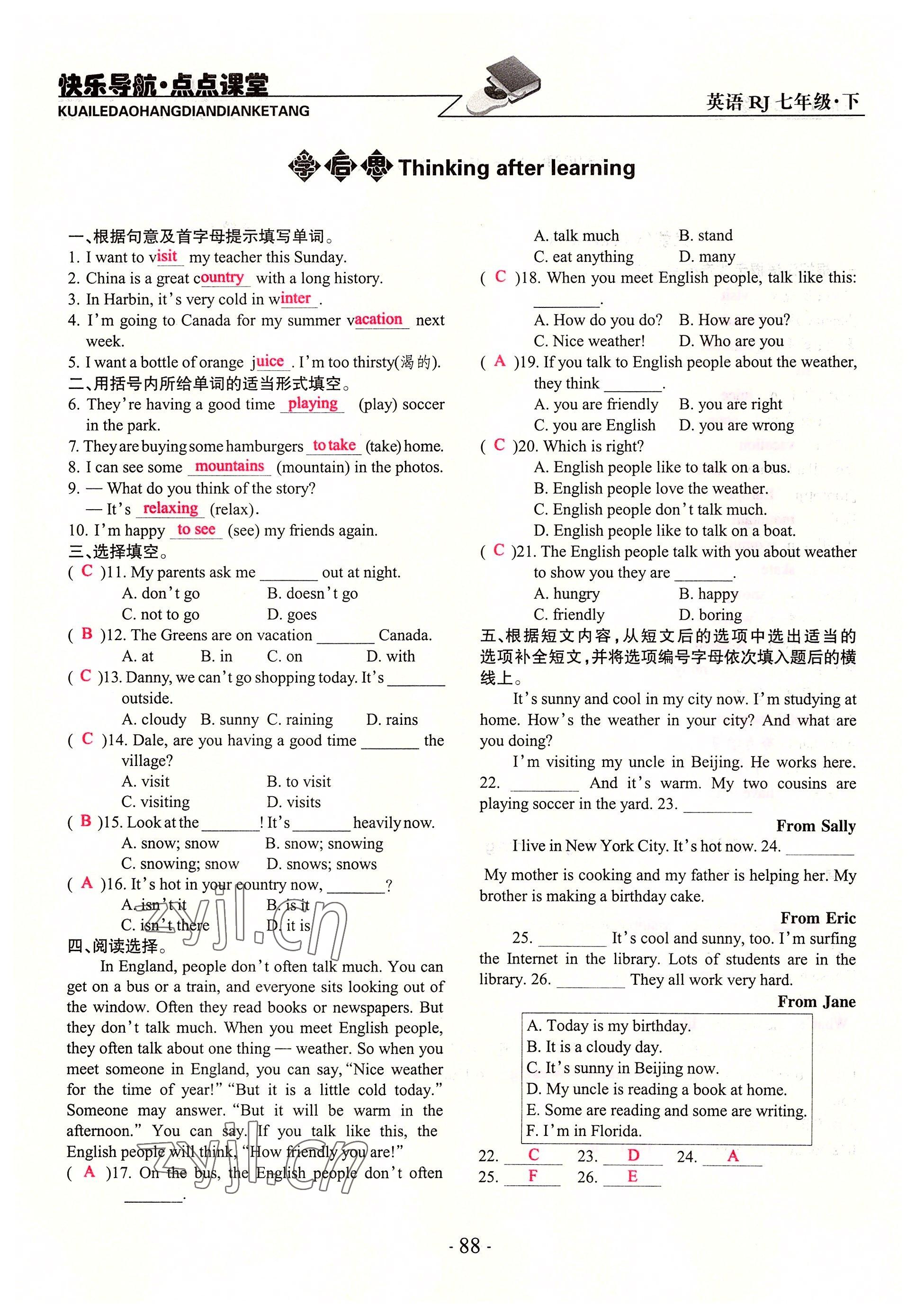 注:目前有些书本章节名称可能整理的还不是很完善,但都是按照顺序排列的,请同学们按照顺序仔细查找。练习册 2022年快乐导航点点课堂七年级英语下册人教版 答案主要是用来给同学们做完题方便对答案用的,请勿直接抄袭。