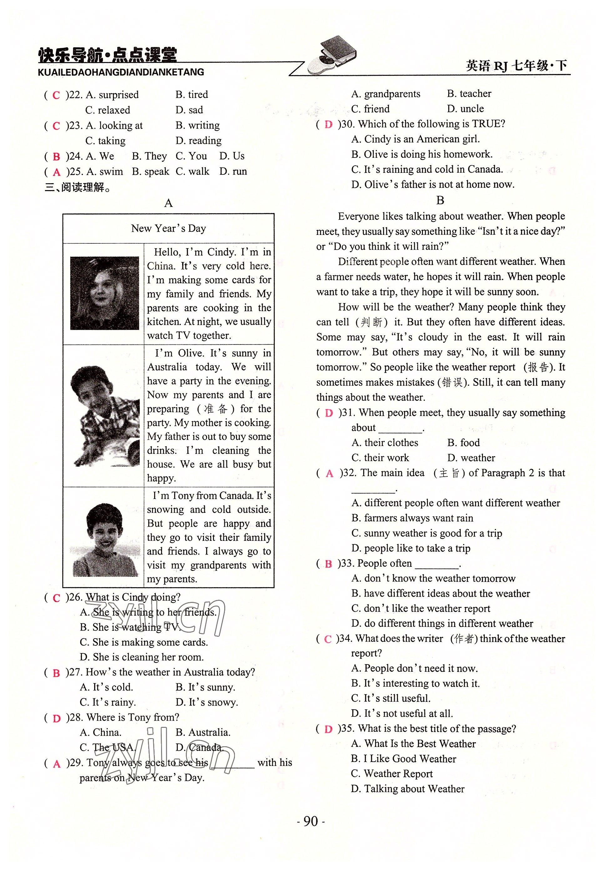 注:目前有些书本章节名称可能整理的还不是很完善,但都是按照顺序排列的,请同学们按照顺序仔细查找。练习册 2022年快乐导航点点课堂七年级英语下册人教版 答案主要是用来给同学们做完题方便对答案用的,请勿直接抄袭。