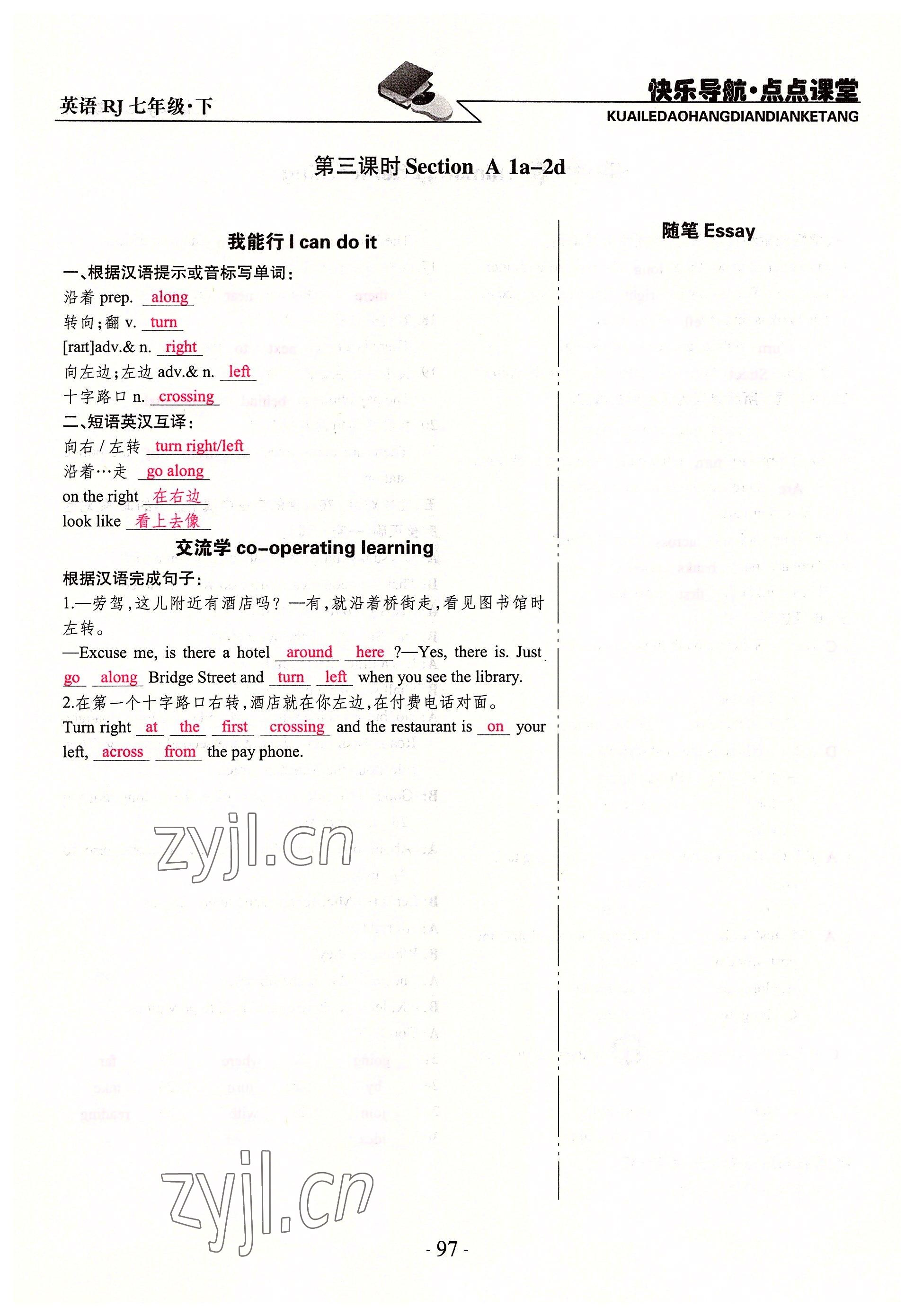 注:目前有些书本章节名称可能整理的还不是很完善,但都是按照顺序排列的,请同学们按照顺序仔细查找。练习册 2022年快乐导航点点课堂七年级英语下册人教版 答案主要是用来给同学们做完题方便对答案用的,请勿直接抄袭。