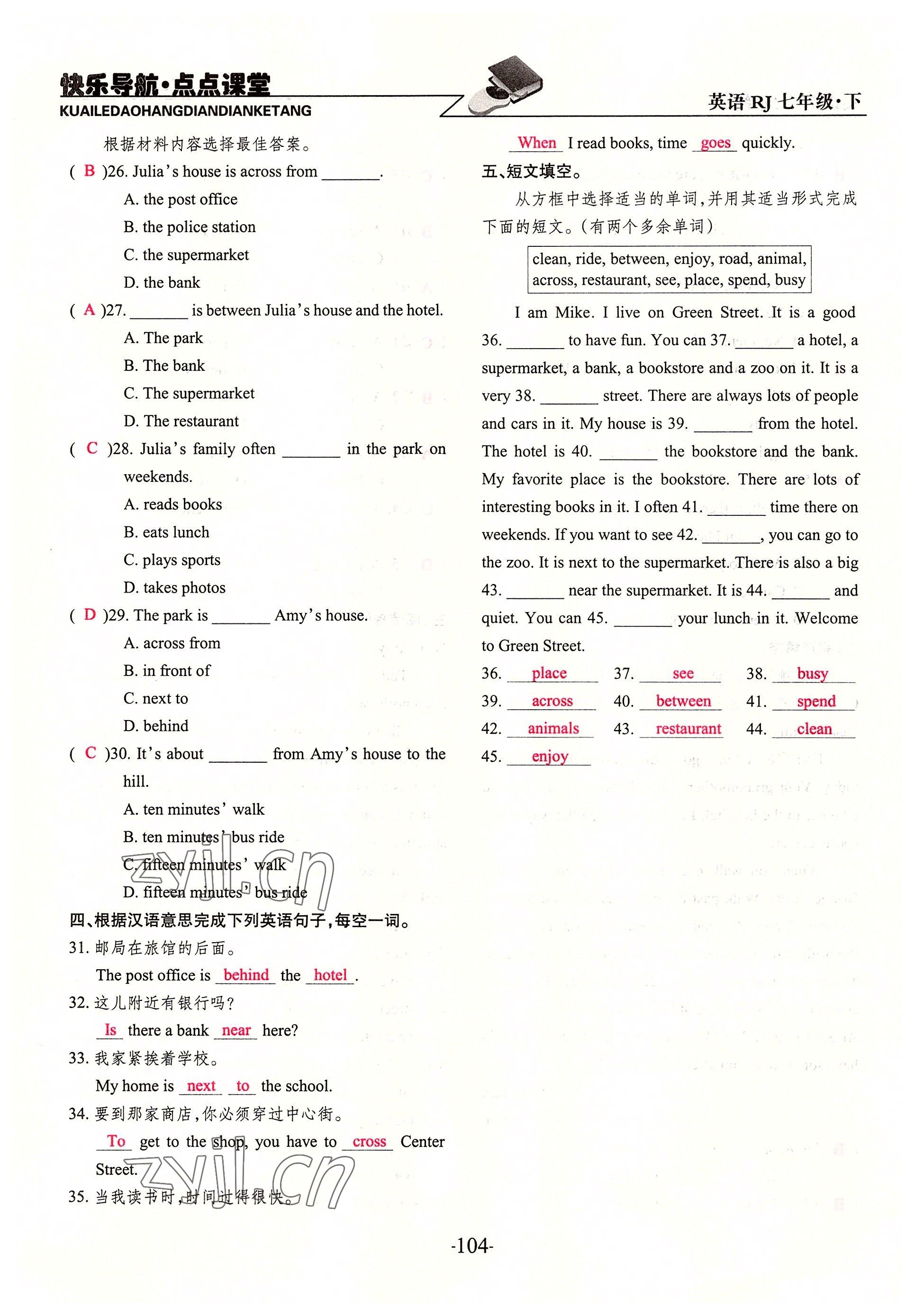 注:目前有些书本章节名称可能整理的还不是很完善,但都是按照顺序排列的,请同学们按照顺序仔细查找。练习册 2022年快乐导航点点课堂七年级英语下册人教版 答案主要是用来给同学们做完题方便对答案用的,请勿直接抄袭。