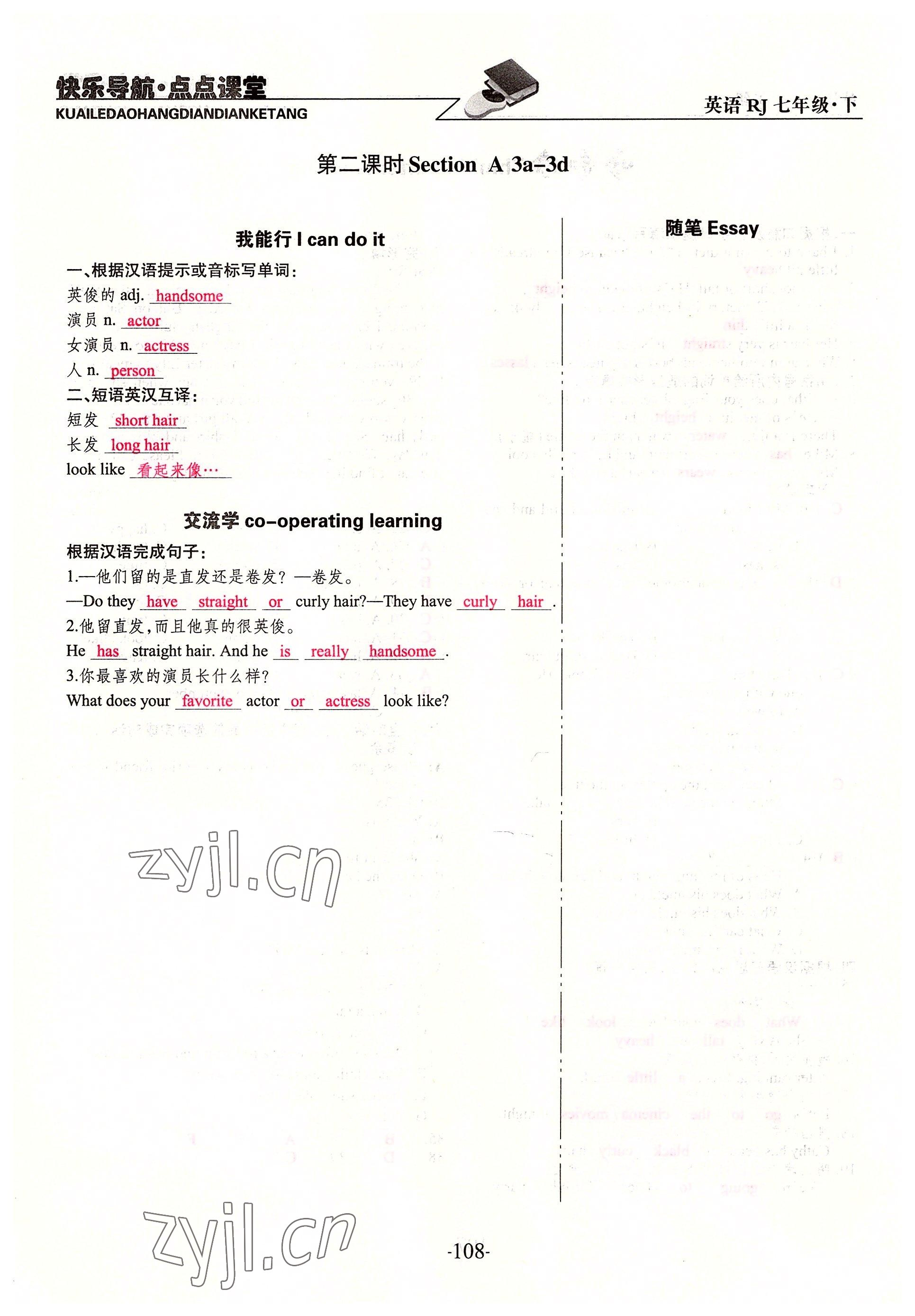 注:目前有些书本章节名称可能整理的还不是很完善,但都是按照顺序排列的,请同学们按照顺序仔细查找。练习册 2022年快乐导航点点课堂七年级英语下册人教版 答案主要是用来给同学们做完题方便对答案用的,请勿直接抄袭。