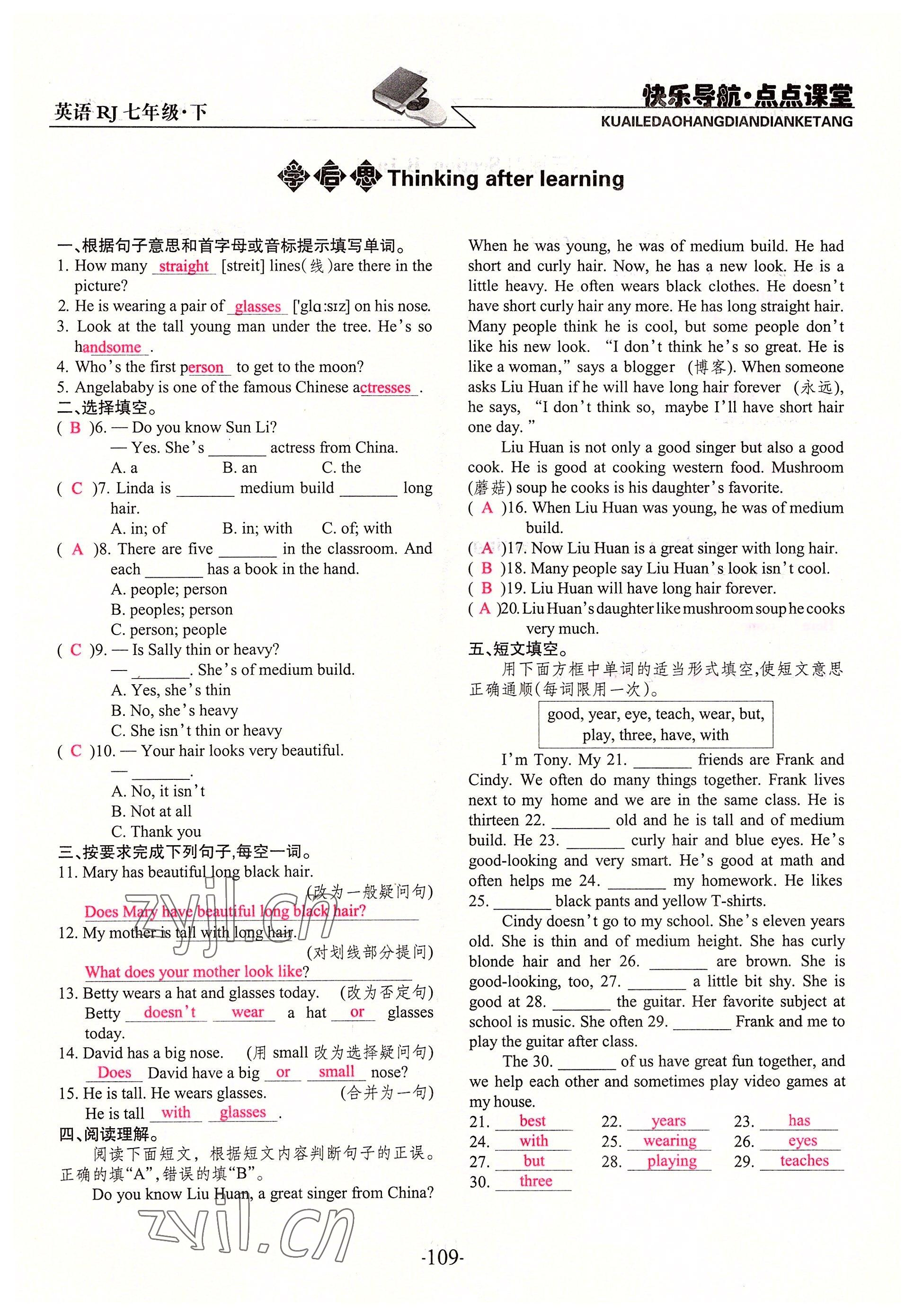 注:目前有些书本章节名称可能整理的还不是很完善,但都是按照顺序排列的,请同学们按照顺序仔细查找。练习册 2022年快乐导航点点课堂七年级英语下册人教版 答案主要是用来给同学们做完题方便对答案用的,请勿直接抄袭。