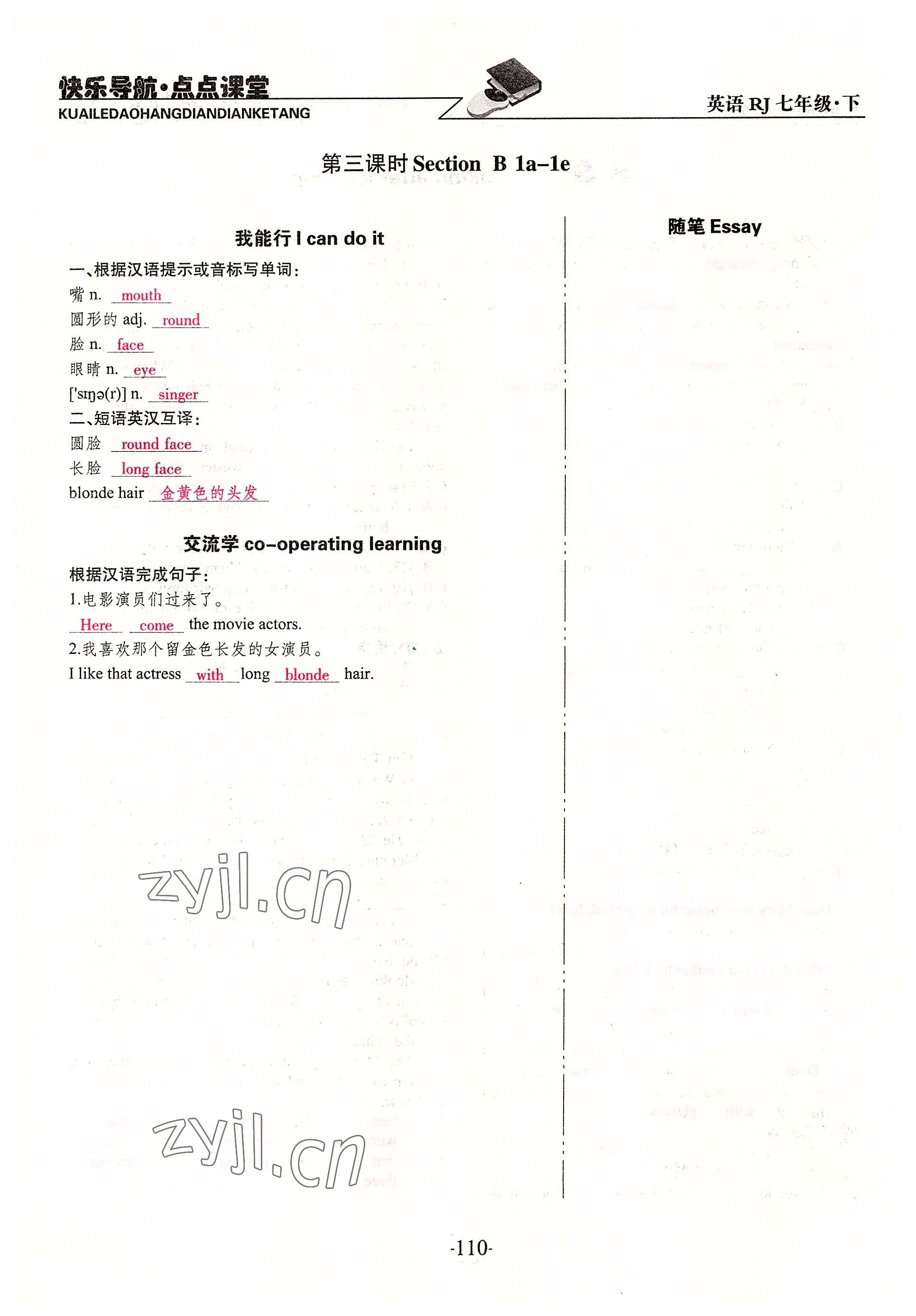 注:目前有些书本章节名称可能整理的还不是很完善,但都是按照顺序排列的,请同学们按照顺序仔细查找。练习册 2022年快乐导航点点课堂七年级英语下册人教版 答案主要是用来给同学们做完题方便对答案用的,请勿直接抄袭。