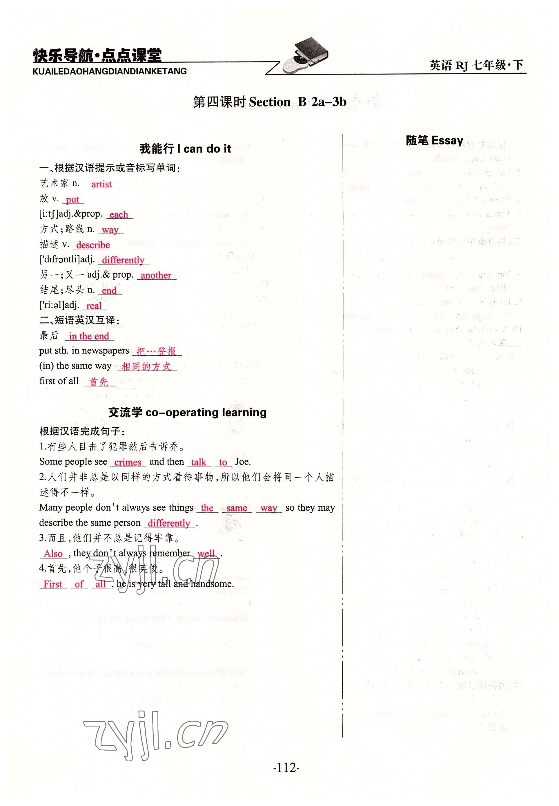 注:目前有些书本章节名称可能整理的还不是很完善,但都是按照顺序排列的,请同学们按照顺序仔细查找。练习册 2022年快乐导航点点课堂七年级英语下册人教版 答案主要是用来给同学们做完题方便对答案用的,请勿直接抄袭。