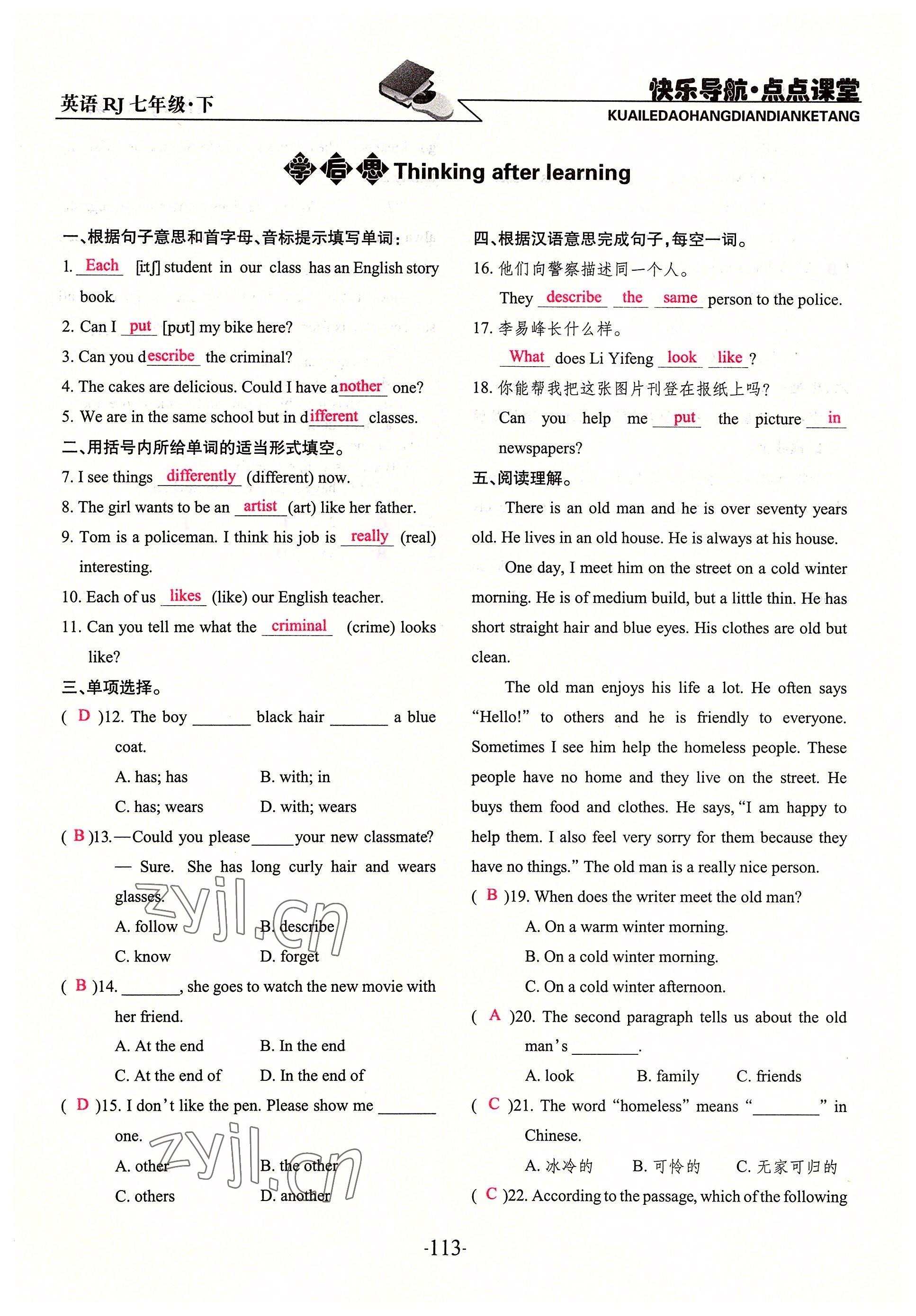 注:目前有些书本章节名称可能整理的还不是很完善,但都是按照顺序排列的,请同学们按照顺序仔细查找。练习册 2022年快乐导航点点课堂七年级英语下册人教版 答案主要是用来给同学们做完题方便对答案用的,请勿直接抄袭。