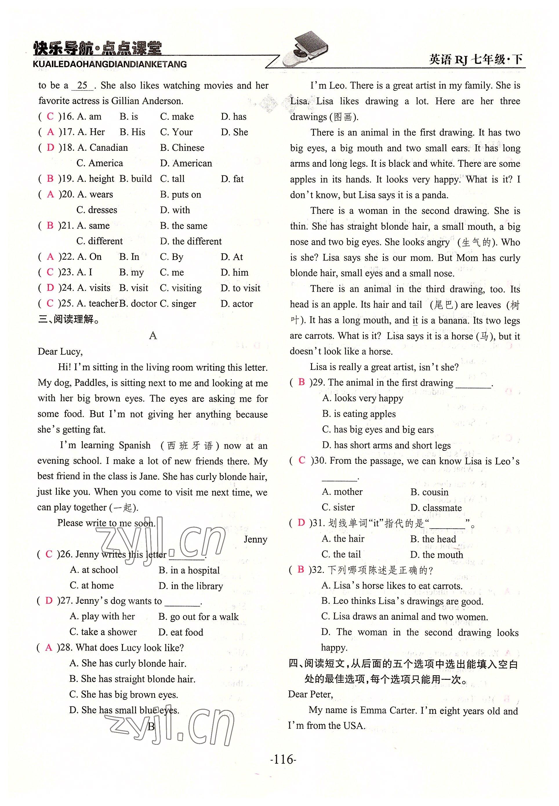 注:目前有些书本章节名称可能整理的还不是很完善,但都是按照顺序排列的,请同学们按照顺序仔细查找。练习册 2022年快乐导航点点课堂七年级英语下册人教版 答案主要是用来给同学们做完题方便对答案用的,请勿直接抄袭。