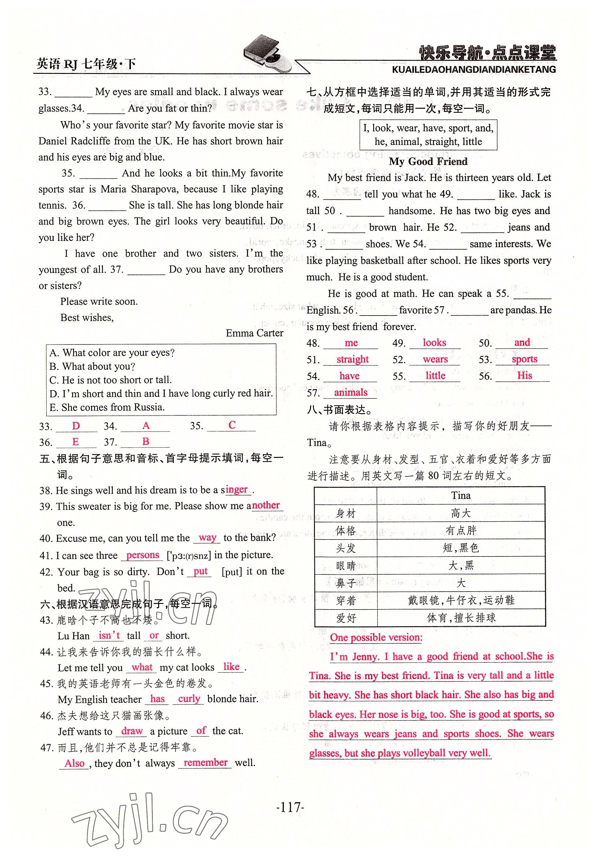 注:目前有些书本章节名称可能整理的还不是很完善,但都是按照顺序排列的,请同学们按照顺序仔细查找。练习册 2022年快乐导航点点课堂七年级英语下册人教版 答案主要是用来给同学们做完题方便对答案用的,请勿直接抄袭。