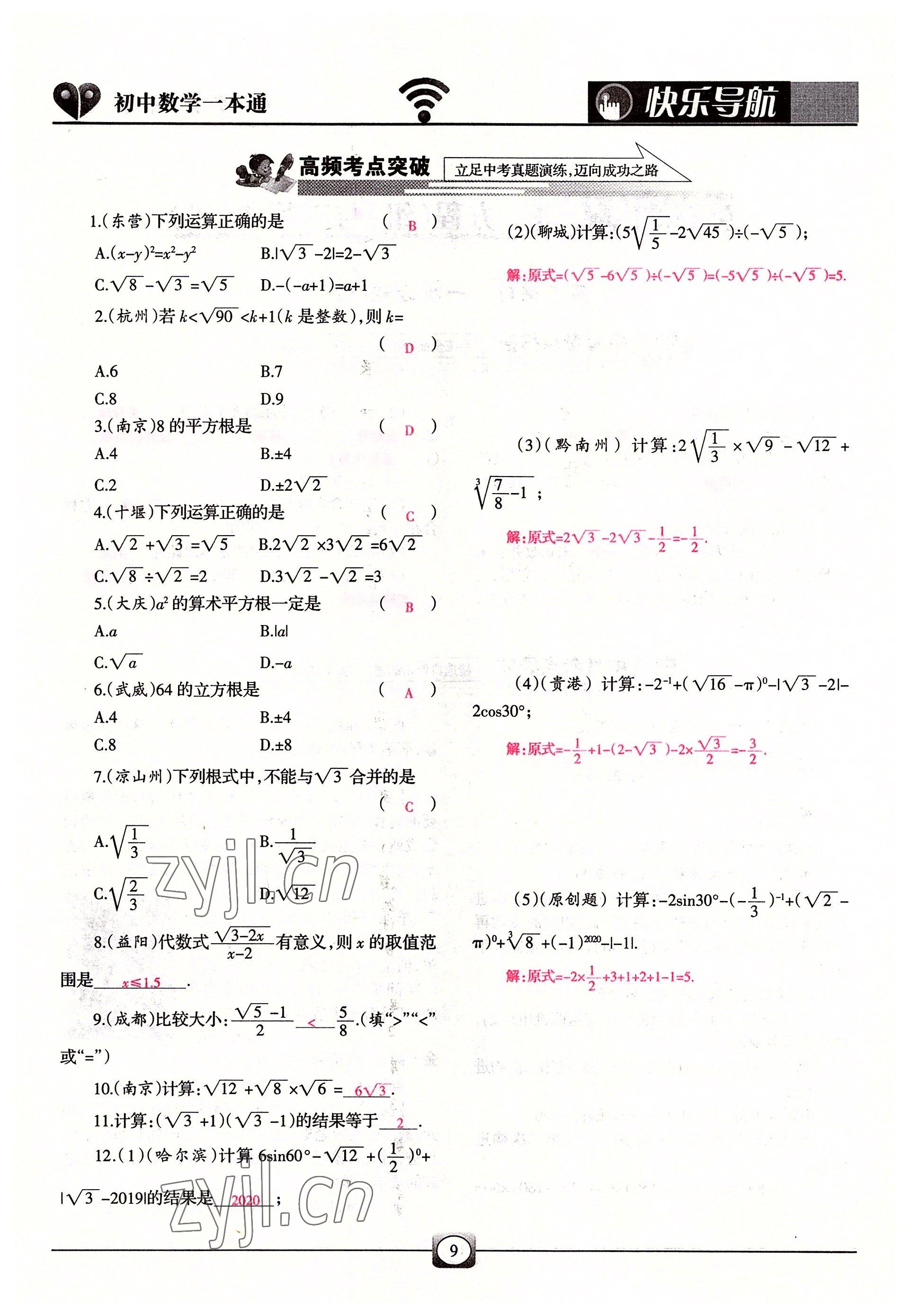注:目前有些书本章节名称可能整理的还不是很完善,但都是按照顺序排列的,请同学们按照顺序仔细查找。练习册 2022年快乐导航九年级数学全一册人教版 答案主要是用来给同学们做完题方便对答案用的,请勿直接抄袭。