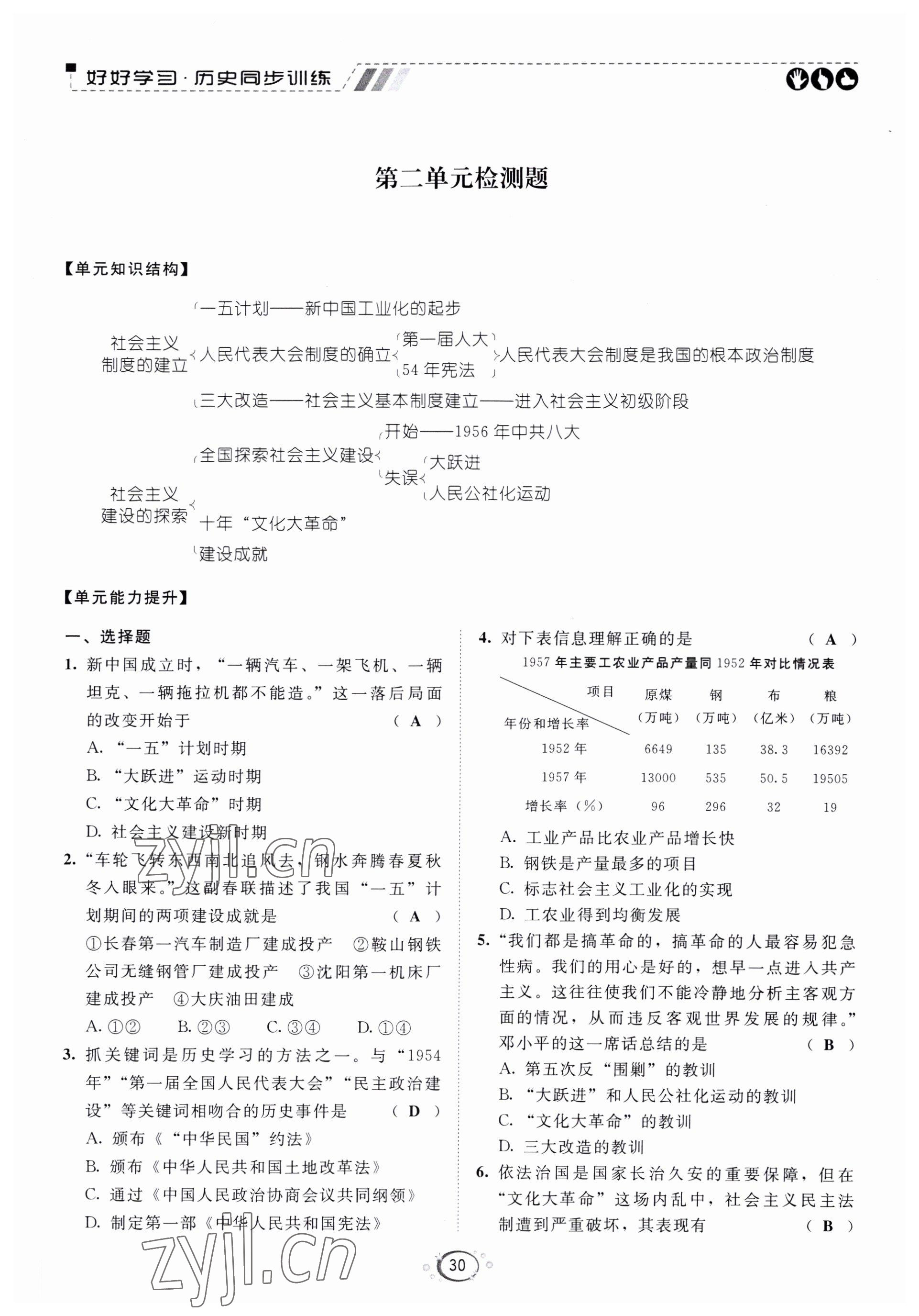 注:目前有些书本章节名称可能整理的还不是很完善,但都是按照顺序排列的,请同学们按照顺序仔细查找。练习册 2022年好好学习同步训练八年级历史下册人教版 答案主要是用来给同学们做完题方便对答案用的,请勿直接抄袭。