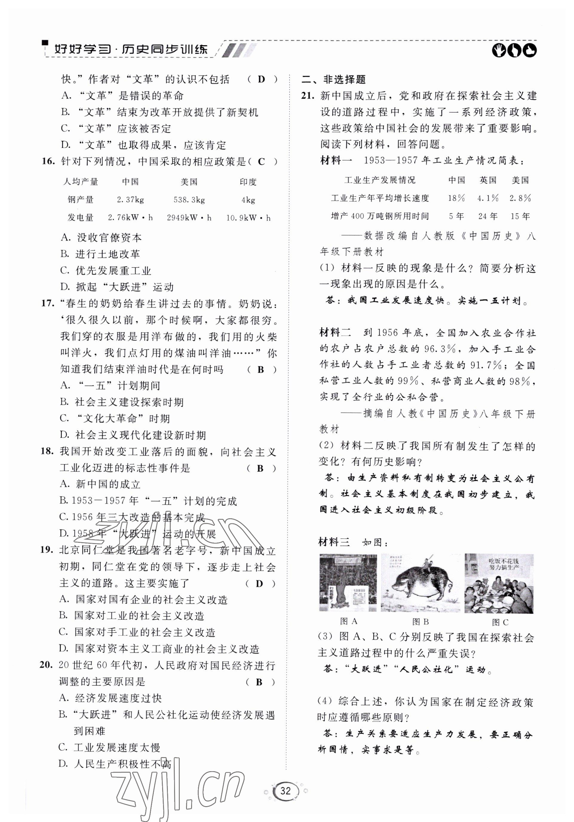 注:目前有些书本章节名称可能整理的还不是很完善,但都是按照顺序排列的,请同学们按照顺序仔细查找。练习册 2022年好好学习同步训练八年级历史下册人教版 答案主要是用来给同学们做完题方便对答案用的,请勿直接抄袭。