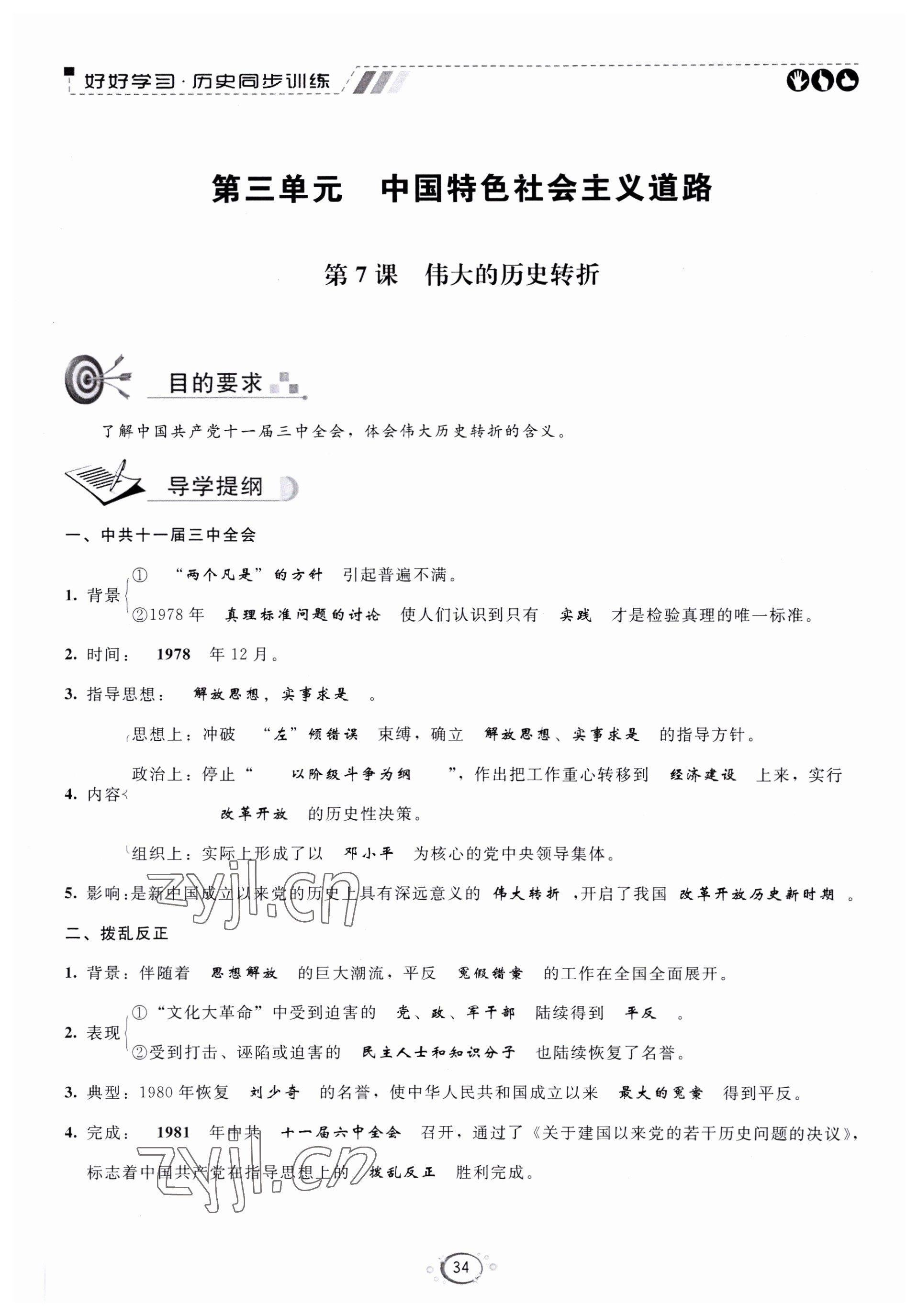 注:目前有些书本章节名称可能整理的还不是很完善,但都是按照顺序排列的,请同学们按照顺序仔细查找。练习册 2022年好好学习同步训练八年级历史下册人教版 答案主要是用来给同学们做完题方便对答案用的,请勿直接抄袭。