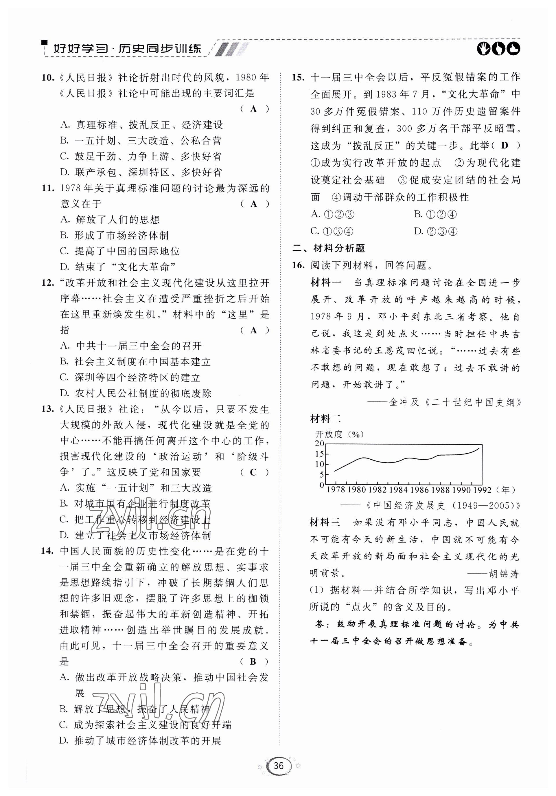 注:目前有些书本章节名称可能整理的还不是很完善,但都是按照顺序排列的,请同学们按照顺序仔细查找。练习册 2022年好好学习同步训练八年级历史下册人教版 答案主要是用来给同学们做完题方便对答案用的,请勿直接抄袭。