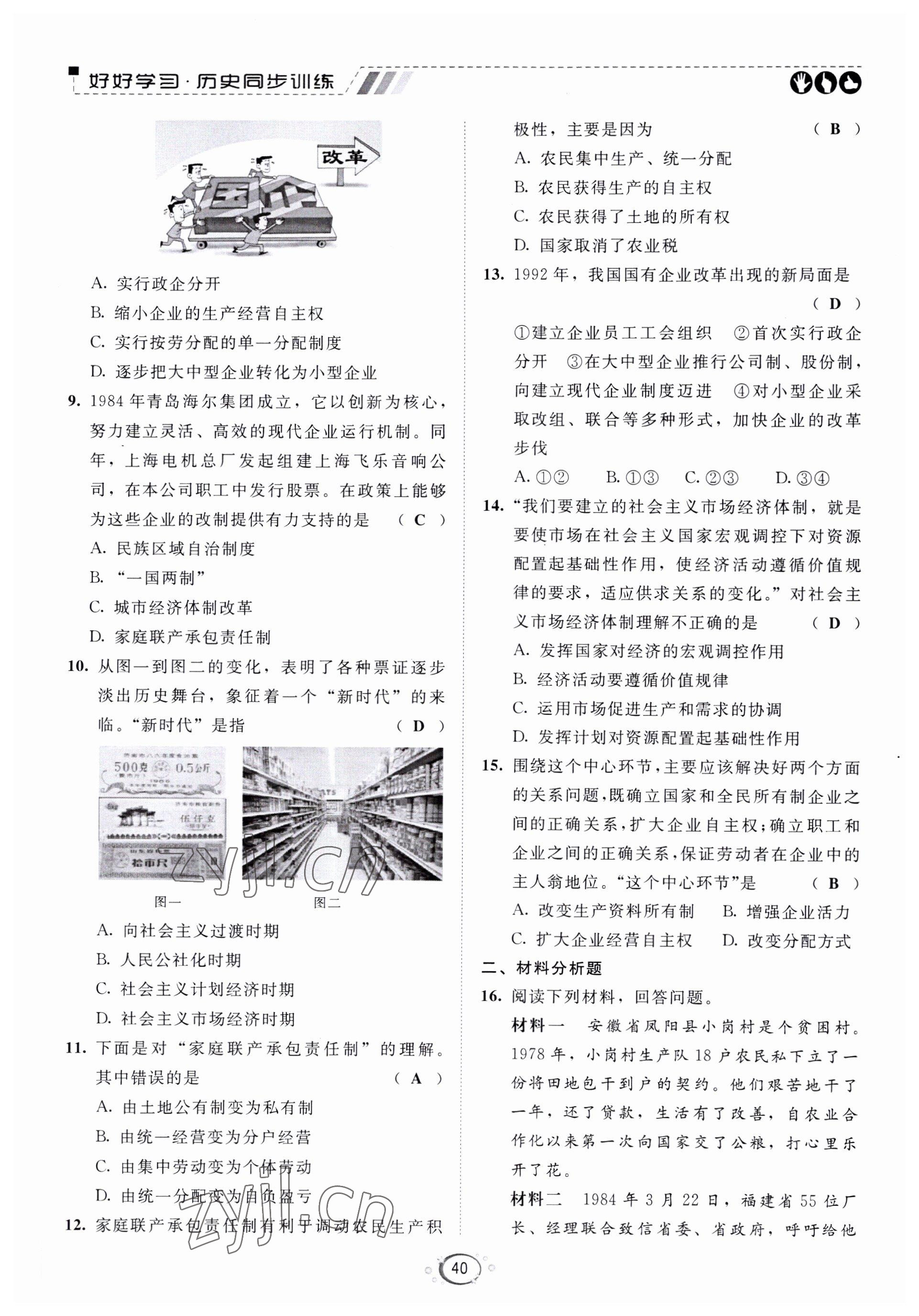 注:目前有些书本章节名称可能整理的还不是很完善,但都是按照顺序排列的,请同学们按照顺序仔细查找。练习册 2022年好好学习同步训练八年级历史下册人教版 答案主要是用来给同学们做完题方便对答案用的,请勿直接抄袭。
