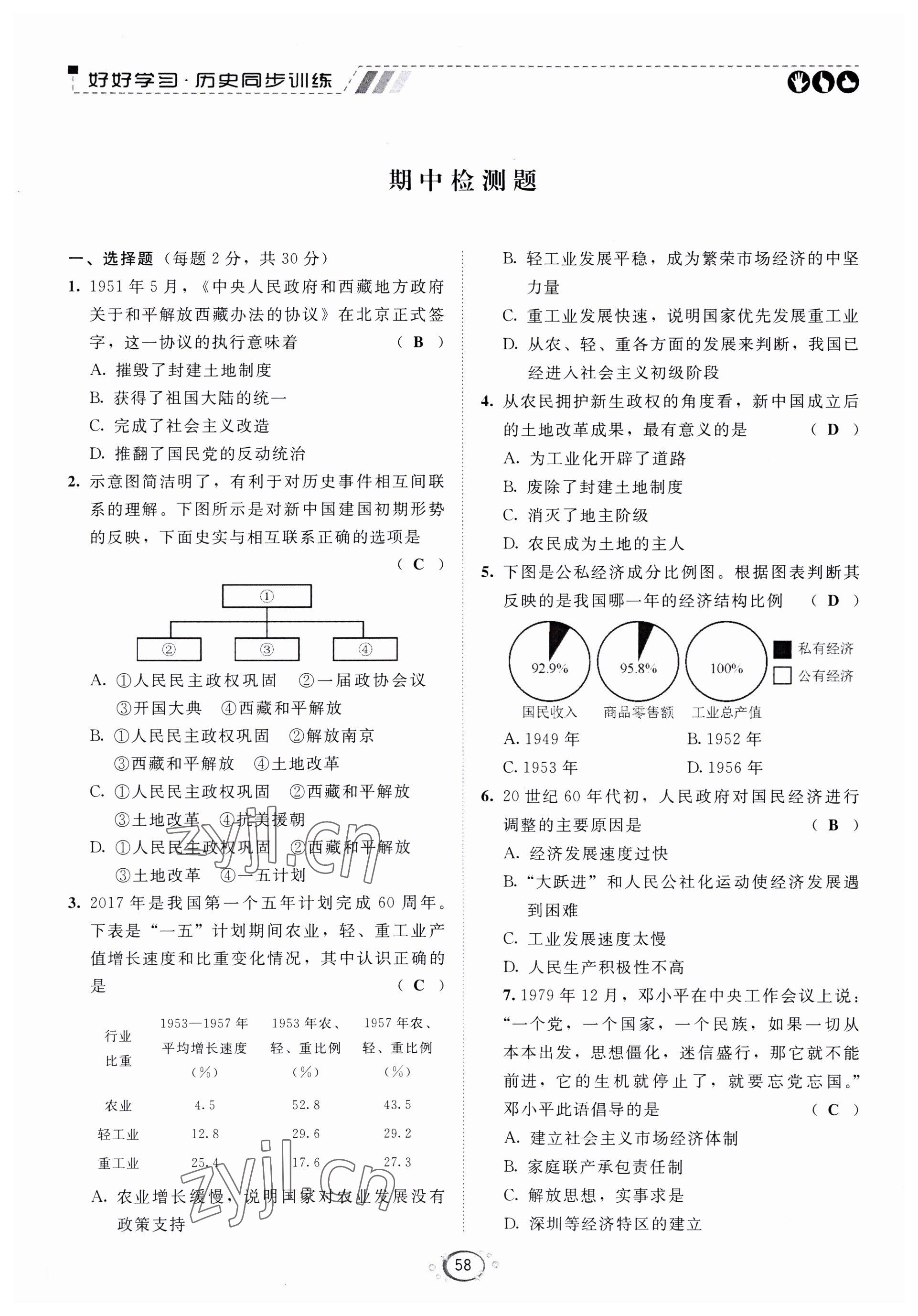 注:目前有些书本章节名称可能整理的还不是很完善,但都是按照顺序排列的,请同学们按照顺序仔细查找。练习册 2022年好好学习同步训练八年级历史下册人教版 答案主要是用来给同学们做完题方便对答案用的,请勿直接抄袭。