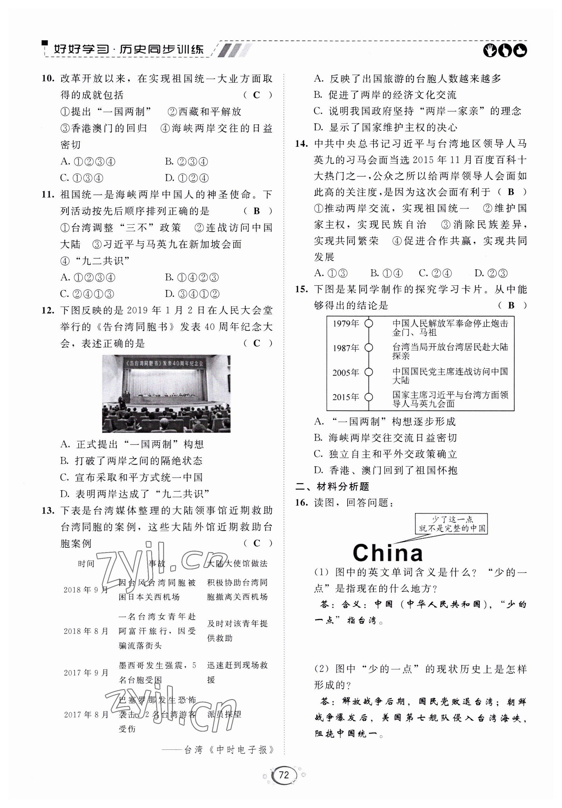 注:目前有些书本章节名称可能整理的还不是很完善,但都是按照顺序排列的,请同学们按照顺序仔细查找。练习册 2022年好好学习同步训练八年级历史下册人教版 答案主要是用来给同学们做完题方便对答案用的,请勿直接抄袭。