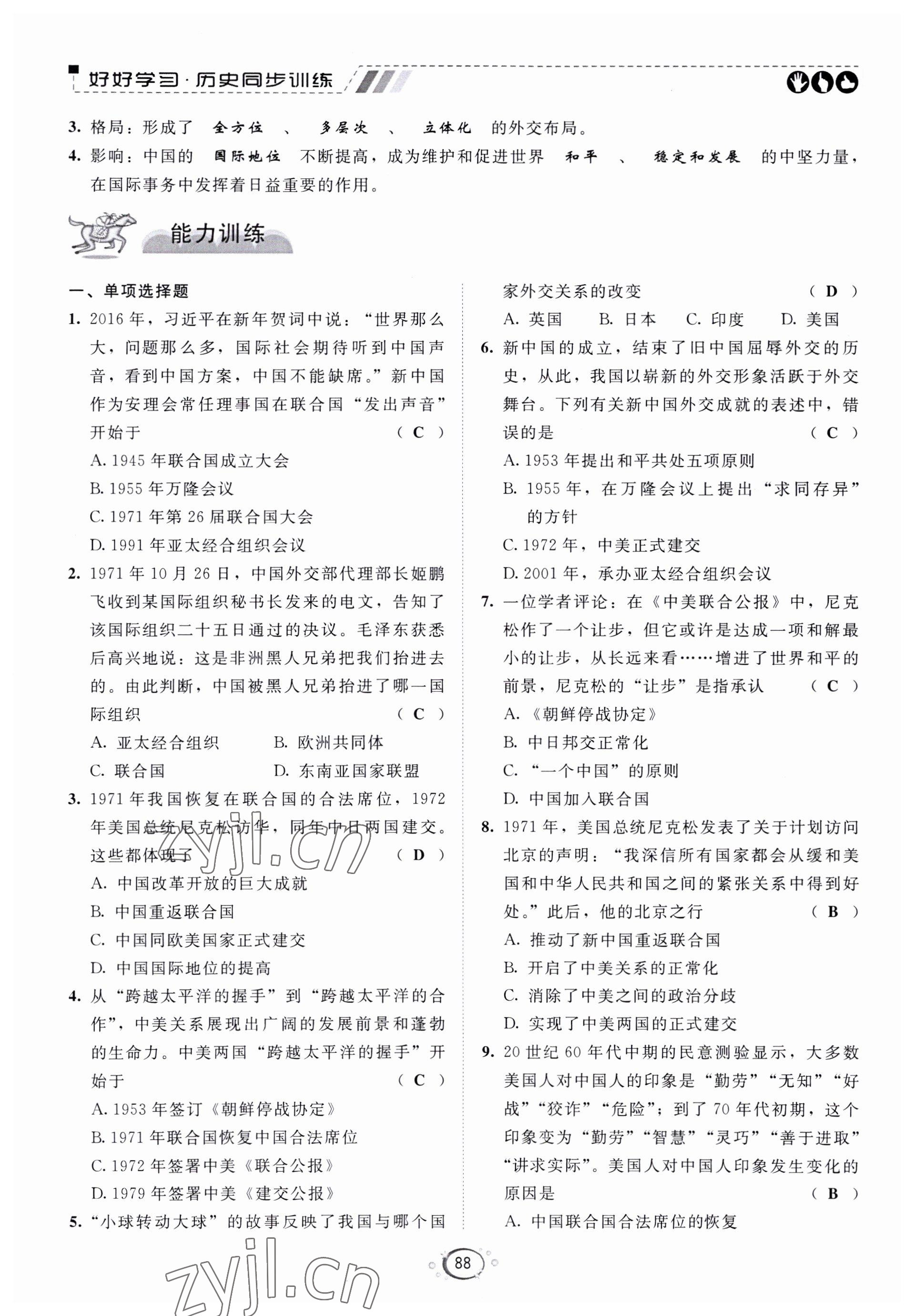 注:目前有些书本章节名称可能整理的还不是很完善,但都是按照顺序排列的,请同学们按照顺序仔细查找。练习册 2022年好好学习同步训练八年级历史下册人教版 答案主要是用来给同学们做完题方便对答案用的,请勿直接抄袭。