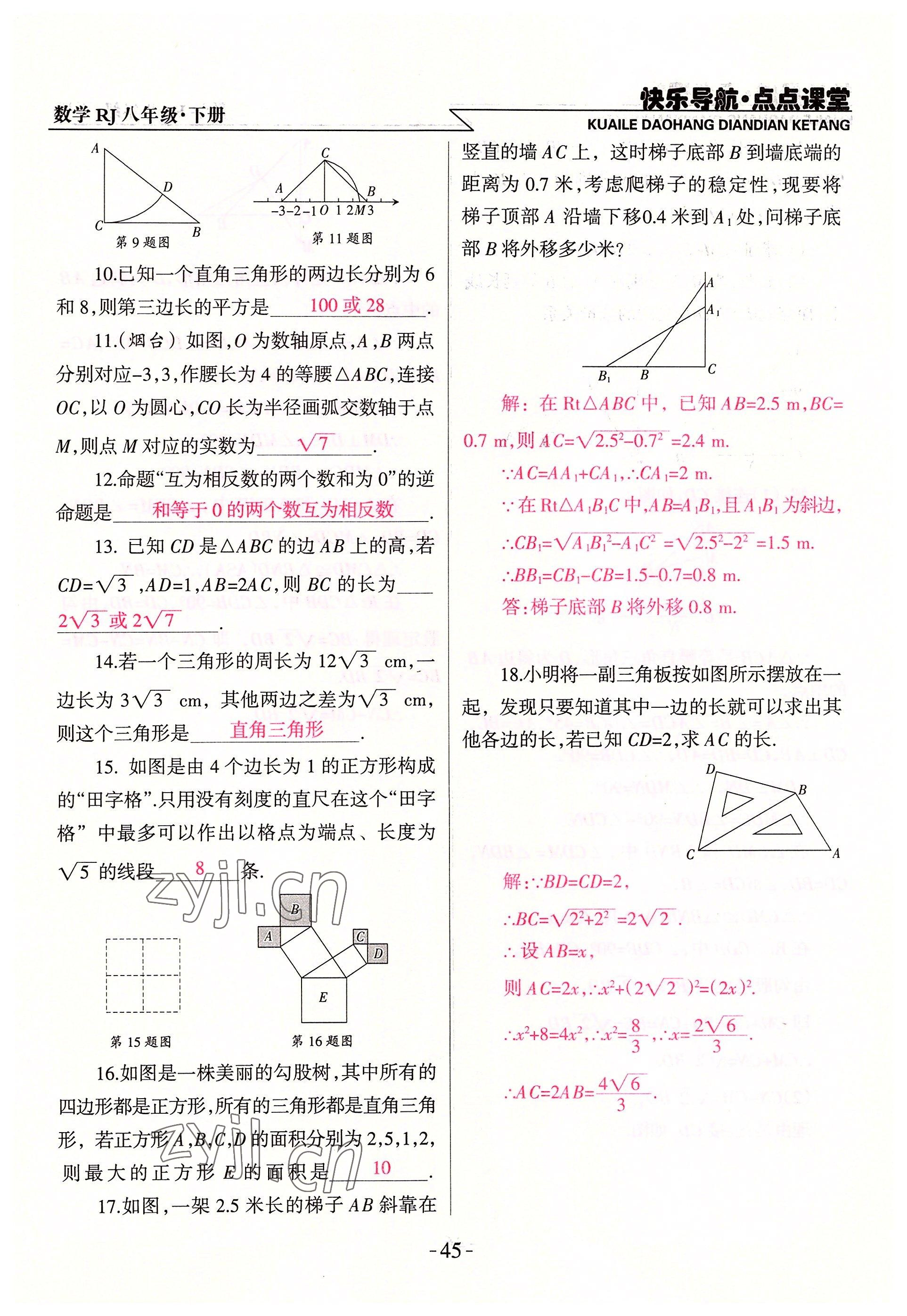 注:目前有些书本章节名称可能整理的还不是很完善,但都是按照顺序排列的,请同学们按照顺序仔细查找。练习册 2022年快乐导航点点课堂八年级数学下册人教版 答案主要是用来给同学们做完题方便对答案用的,请勿直接抄袭。