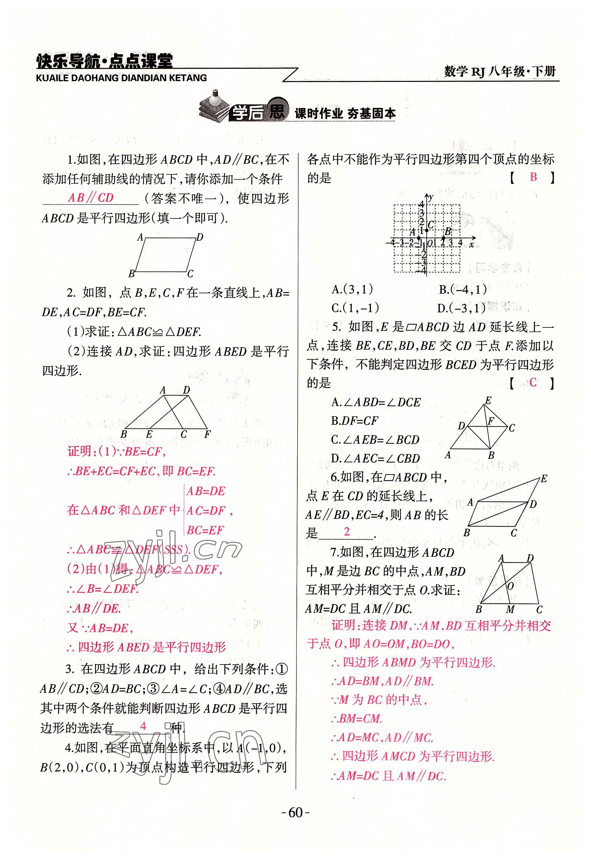 注:目前有些书本章节名称可能整理的还不是很完善,但都是按照顺序排列的,请同学们按照顺序仔细查找。练习册 2022年快乐导航点点课堂八年级数学下册人教版 答案主要是用来给同学们做完题方便对答案用的,请勿直接抄袭。
