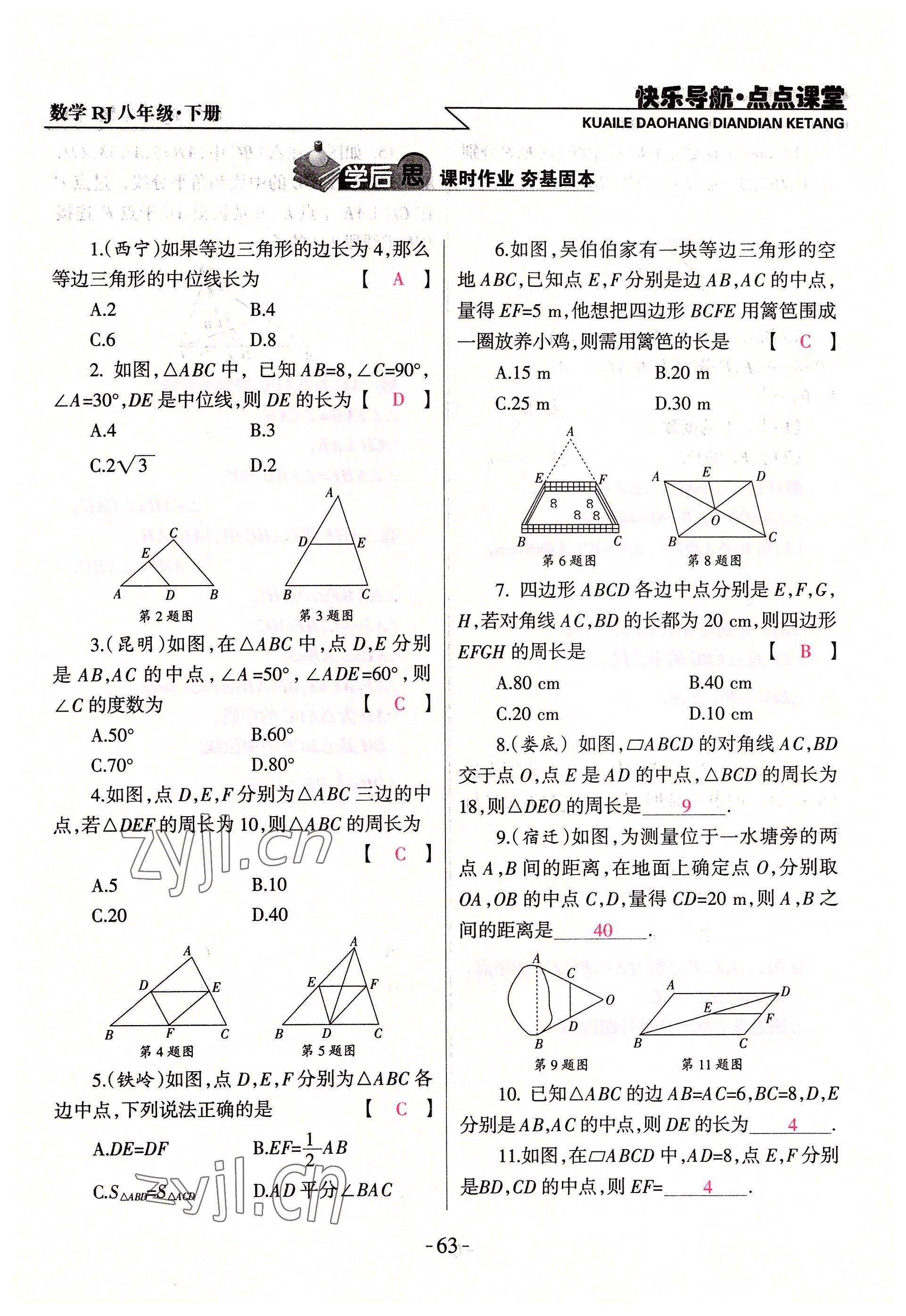 注:目前有些书本章节名称可能整理的还不是很完善,但都是按照顺序排列的,请同学们按照顺序仔细查找。练习册 2022年快乐导航点点课堂八年级数学下册人教版 答案主要是用来给同学们做完题方便对答案用的,请勿直接抄袭。