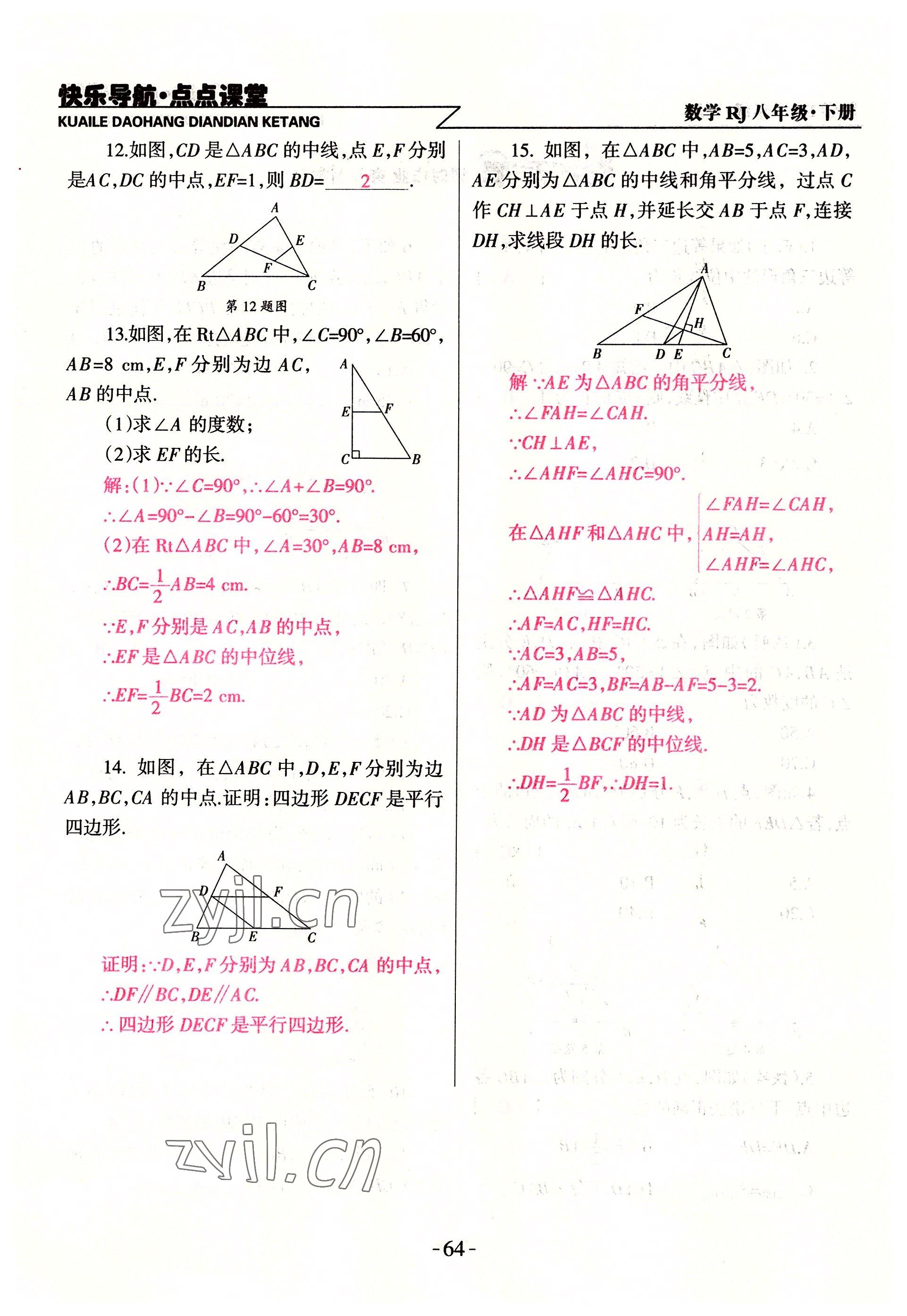 注:目前有些书本章节名称可能整理的还不是很完善,但都是按照顺序排列的,请同学们按照顺序仔细查找。练习册 2022年快乐导航点点课堂八年级数学下册人教版 答案主要是用来给同学们做完题方便对答案用的,请勿直接抄袭。