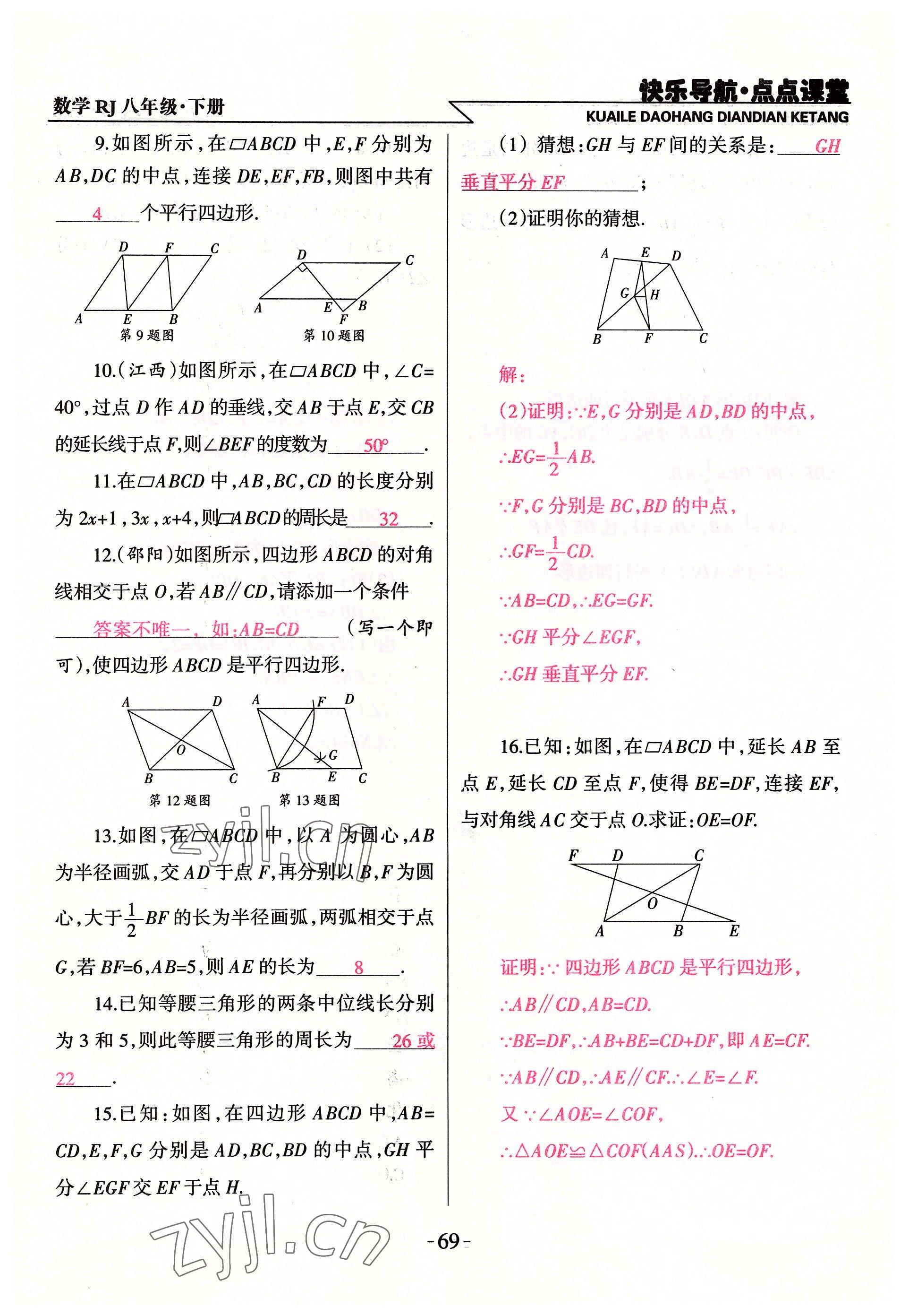 注:目前有些书本章节名称可能整理的还不是很完善,但都是按照顺序排列的,请同学们按照顺序仔细查找。练习册 2022年快乐导航点点课堂八年级数学下册人教版 答案主要是用来给同学们做完题方便对答案用的,请勿直接抄袭。