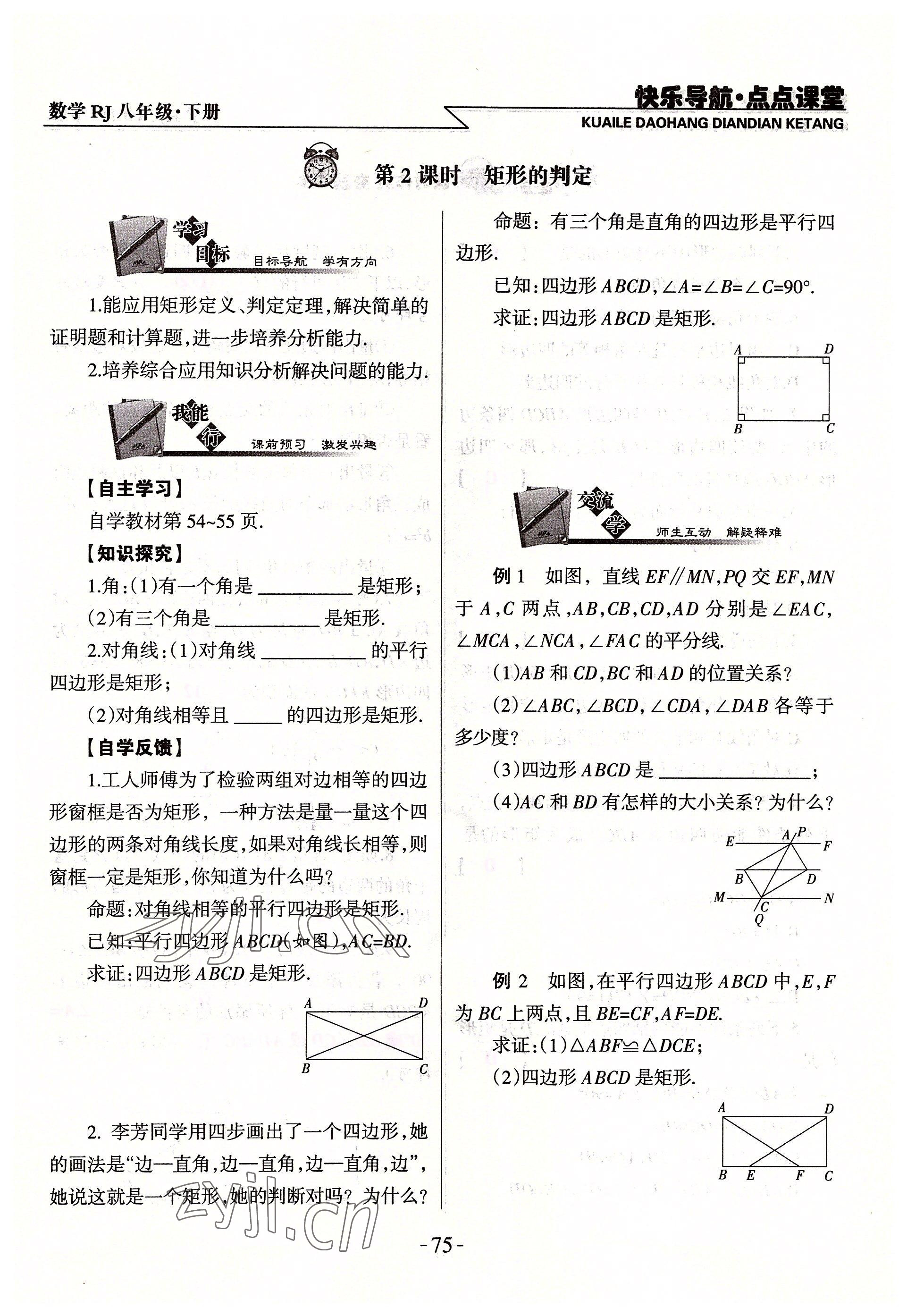 注:目前有些书本章节名称可能整理的还不是很完善,但都是按照顺序排列的,请同学们按照顺序仔细查找。练习册 2022年快乐导航点点课堂八年级数学下册人教版 答案主要是用来给同学们做完题方便对答案用的,请勿直接抄袭。