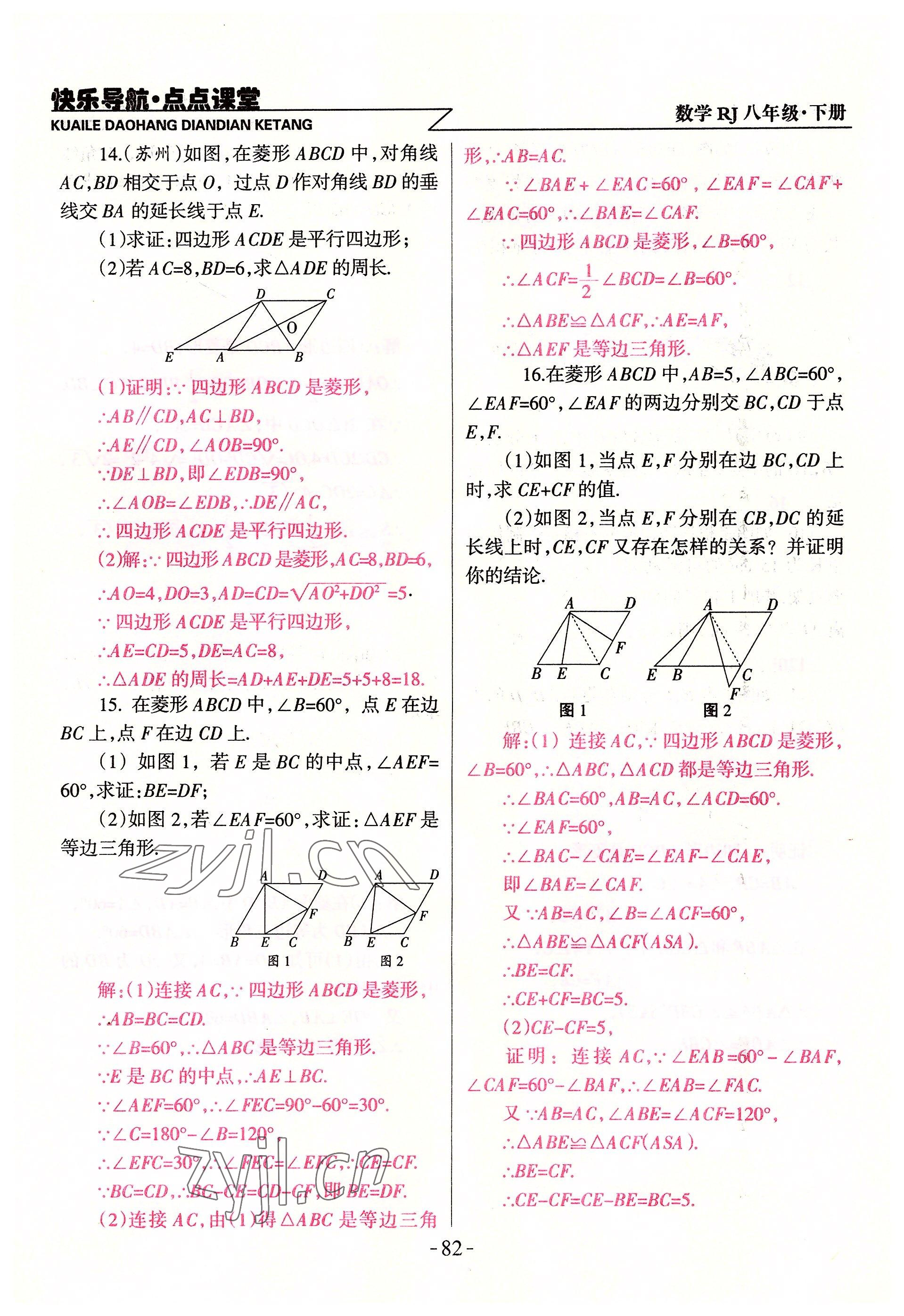 注:目前有些书本章节名称可能整理的还不是很完善,但都是按照顺序排列的,请同学们按照顺序仔细查找。练习册 2022年快乐导航点点课堂八年级数学下册人教版 答案主要是用来给同学们做完题方便对答案用的,请勿直接抄袭。