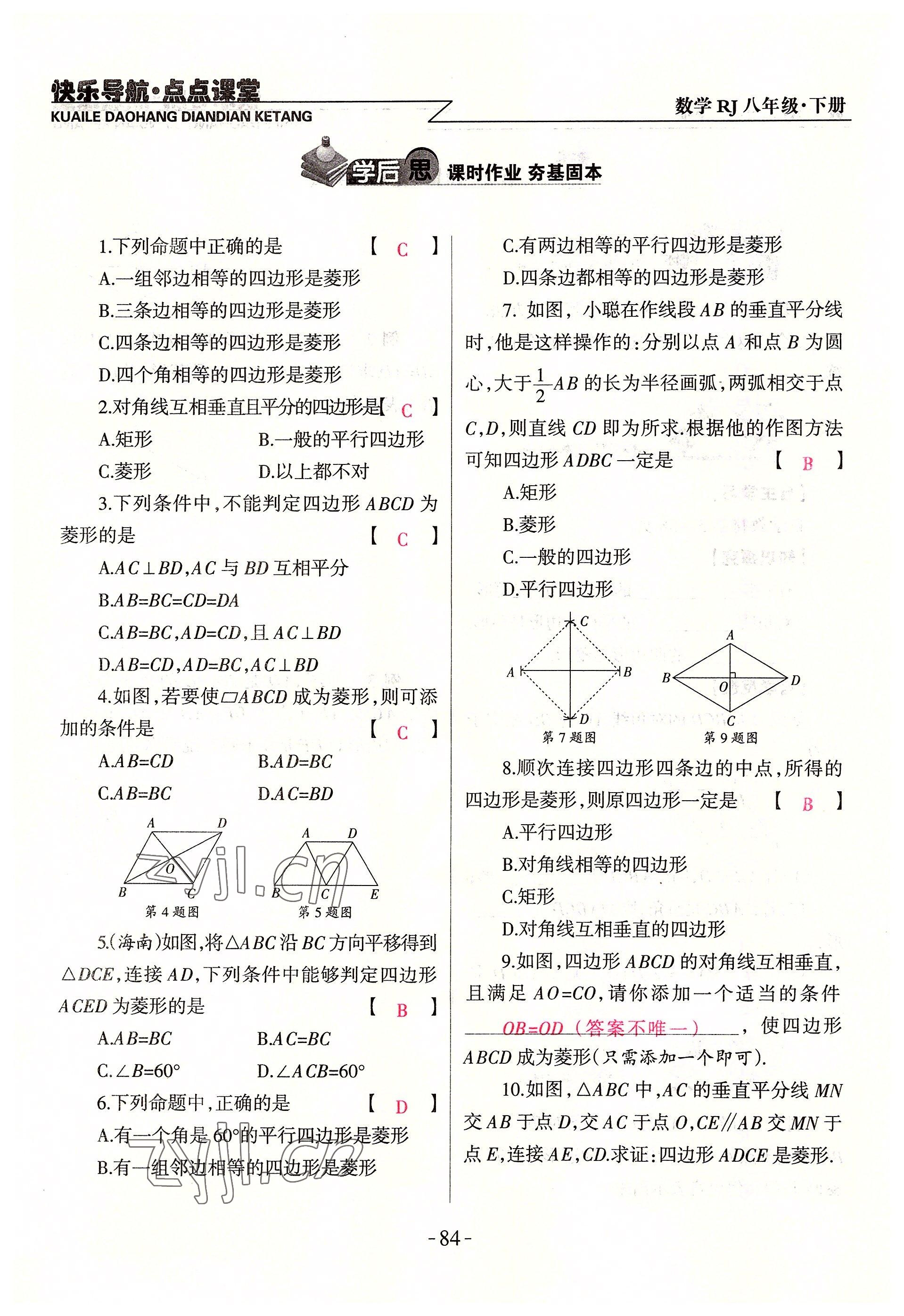 注:目前有些书本章节名称可能整理的还不是很完善,但都是按照顺序排列的,请同学们按照顺序仔细查找。练习册 2022年快乐导航点点课堂八年级数学下册人教版 答案主要是用来给同学们做完题方便对答案用的,请勿直接抄袭。
