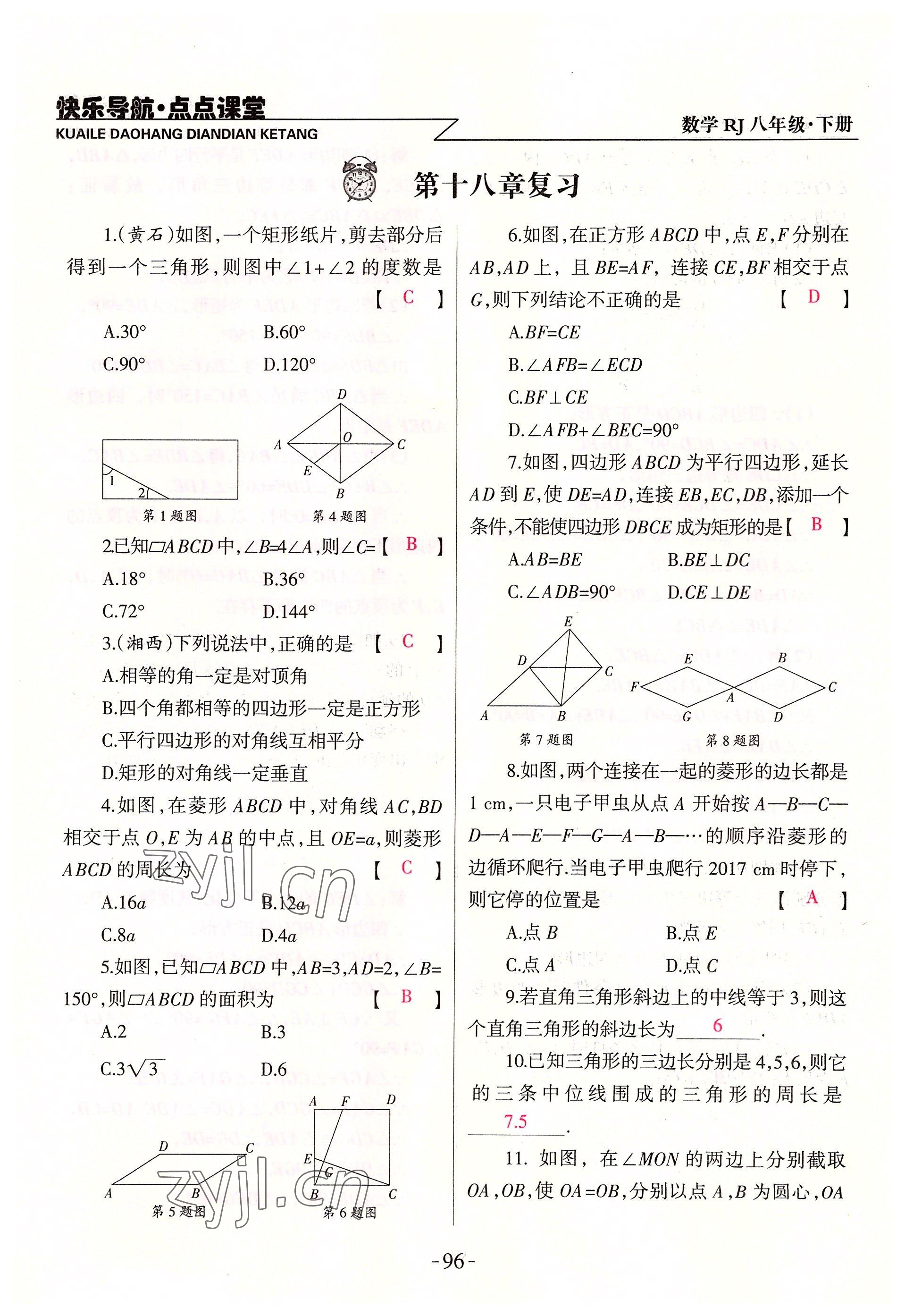 注:目前有些书本章节名称可能整理的还不是很完善,但都是按照顺序排列的,请同学们按照顺序仔细查找。练习册 2022年快乐导航点点课堂八年级数学下册人教版 答案主要是用来给同学们做完题方便对答案用的,请勿直接抄袭。