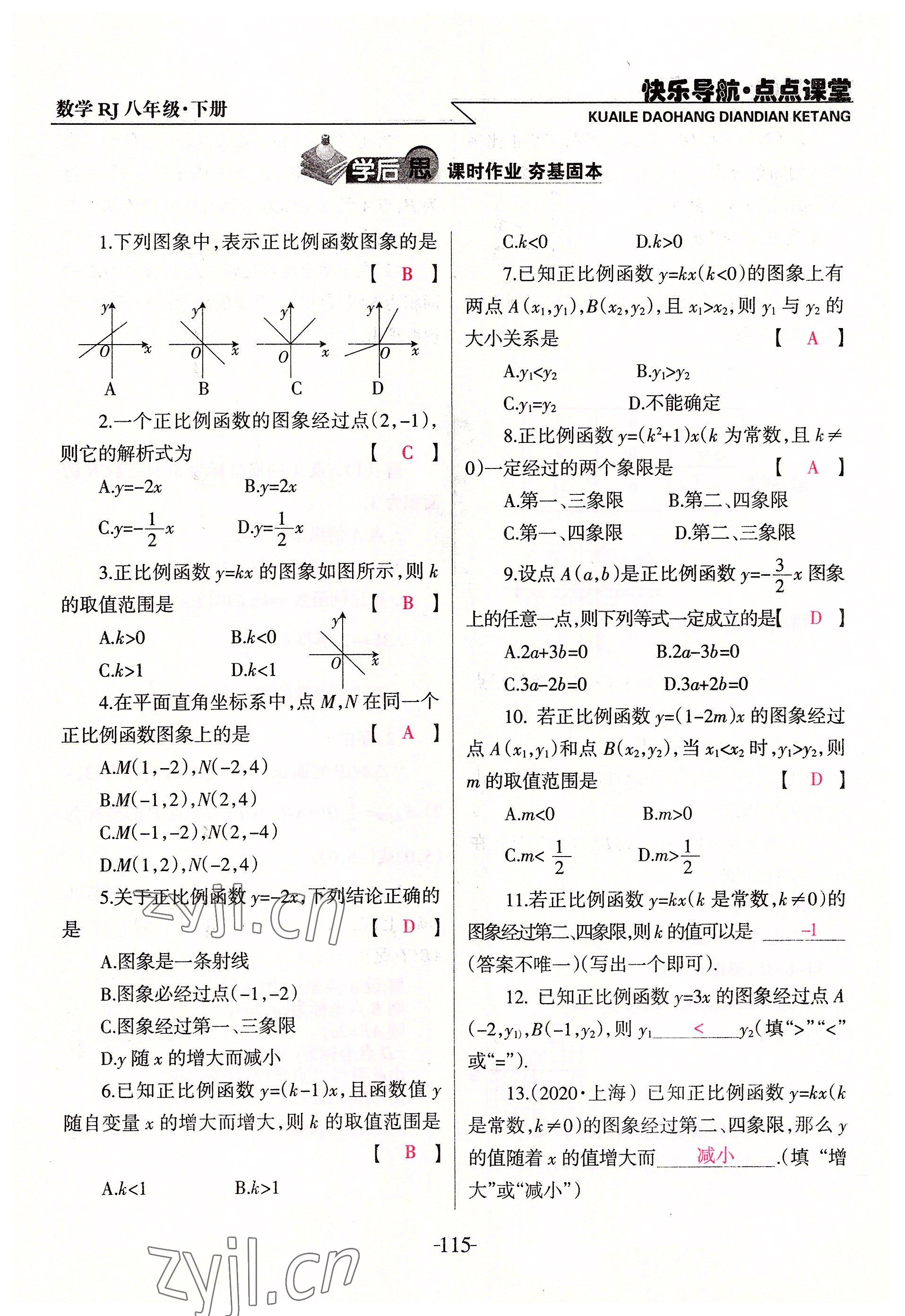注:目前有些书本章节名称可能整理的还不是很完善,但都是按照顺序排列的,请同学们按照顺序仔细查找。练习册 2022年快乐导航点点课堂八年级数学下册人教版 答案主要是用来给同学们做完题方便对答案用的,请勿直接抄袭。