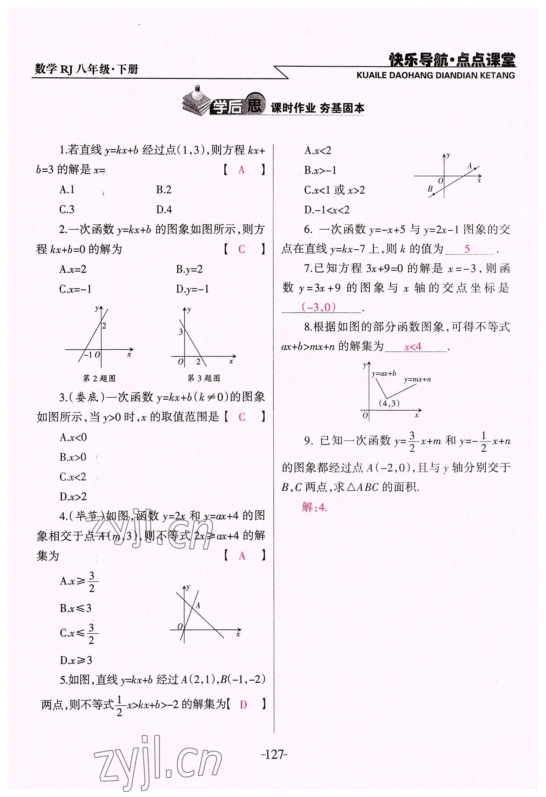 注:目前有些书本章节名称可能整理的还不是很完善,但都是按照顺序排列的,请同学们按照顺序仔细查找。练习册 2022年快乐导航点点课堂八年级数学下册人教版 答案主要是用来给同学们做完题方便对答案用的,请勿直接抄袭。