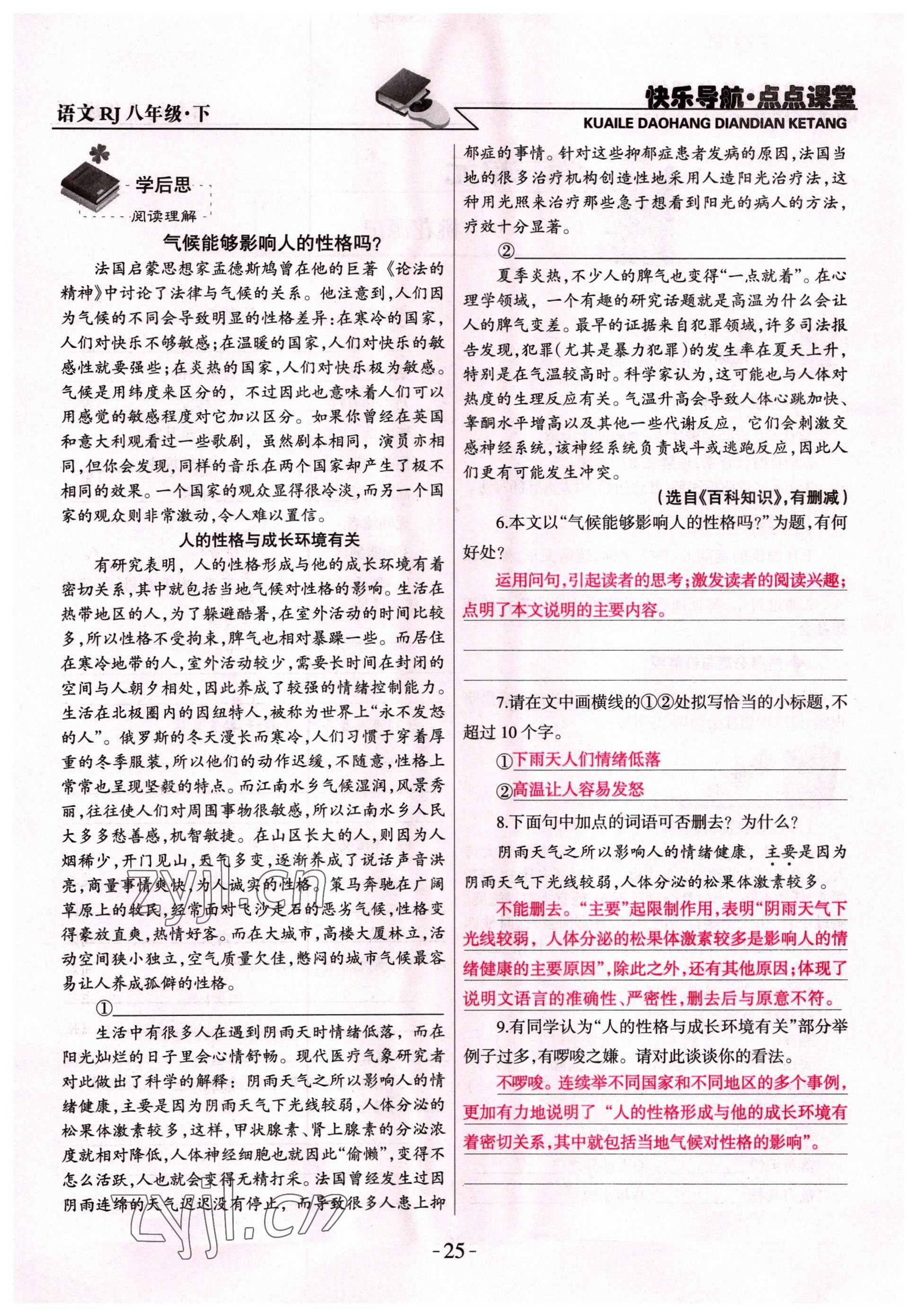 注:目前有些书本章节名称可能整理的还不是很完善,但都是按照顺序排列的,请同学们按照顺序仔细查找。练习册 2022年快乐导航点点课堂八年级语文下册人教版 答案主要是用来给同学们做完题方便对答案用的,请勿直接抄袭。