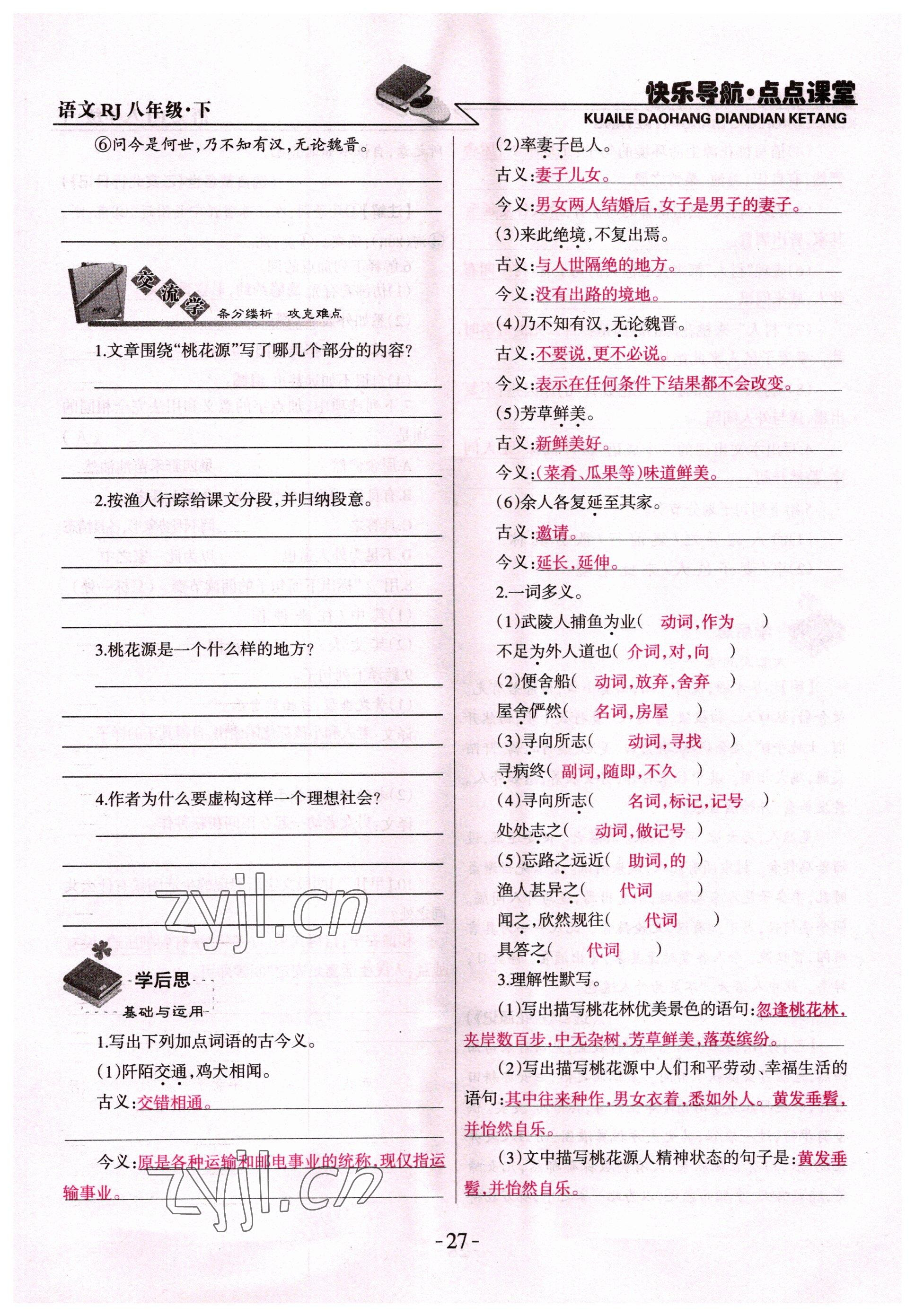 注:目前有些书本章节名称可能整理的还不是很完善,但都是按照顺序排列的,请同学们按照顺序仔细查找。练习册 2022年快乐导航点点课堂八年级语文下册人教版 答案主要是用来给同学们做完题方便对答案用的,请勿直接抄袭。