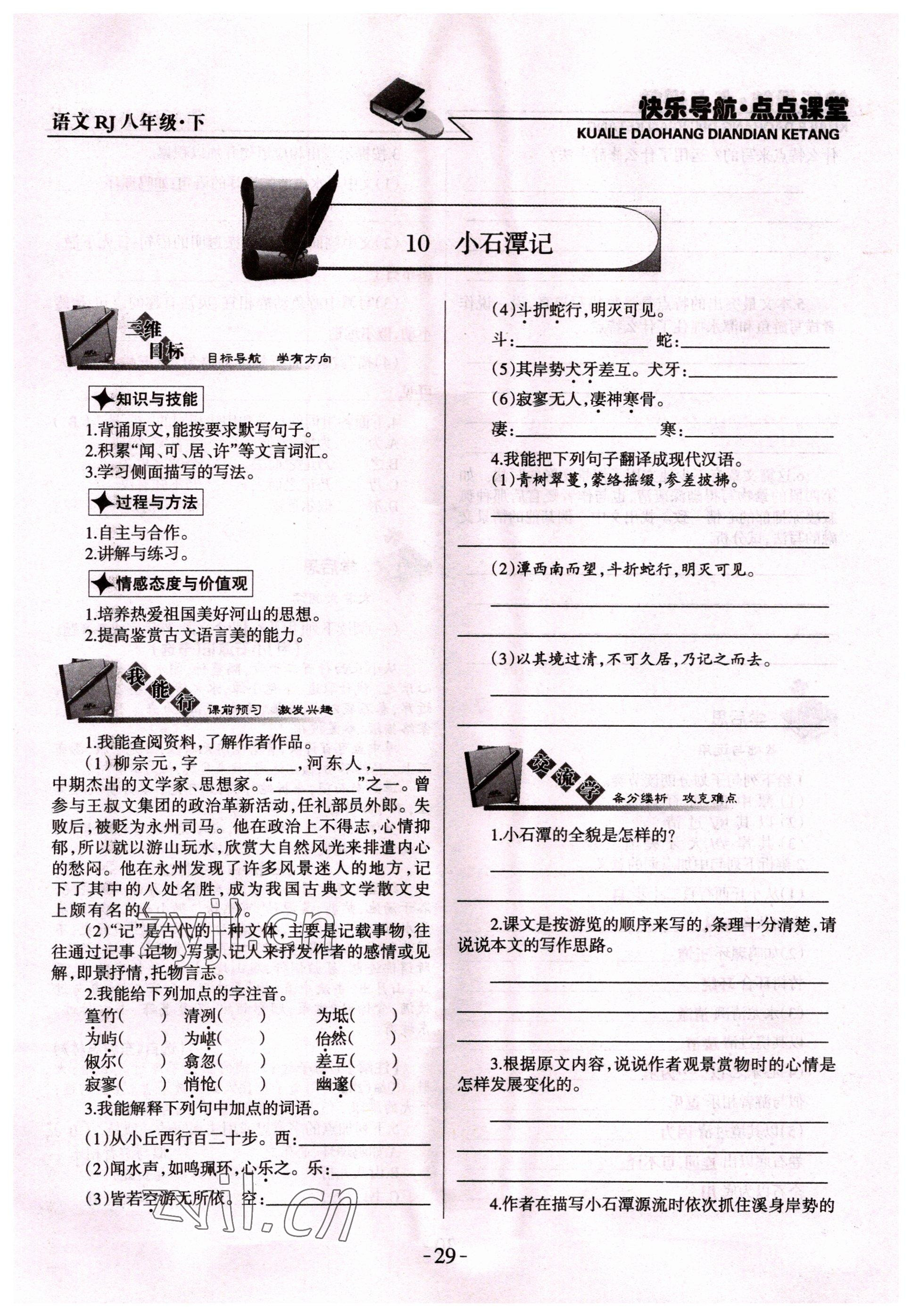 注:目前有些书本章节名称可能整理的还不是很完善,但都是按照顺序排列的,请同学们按照顺序仔细查找。练习册 2022年快乐导航点点课堂八年级语文下册人教版 答案主要是用来给同学们做完题方便对答案用的,请勿直接抄袭。