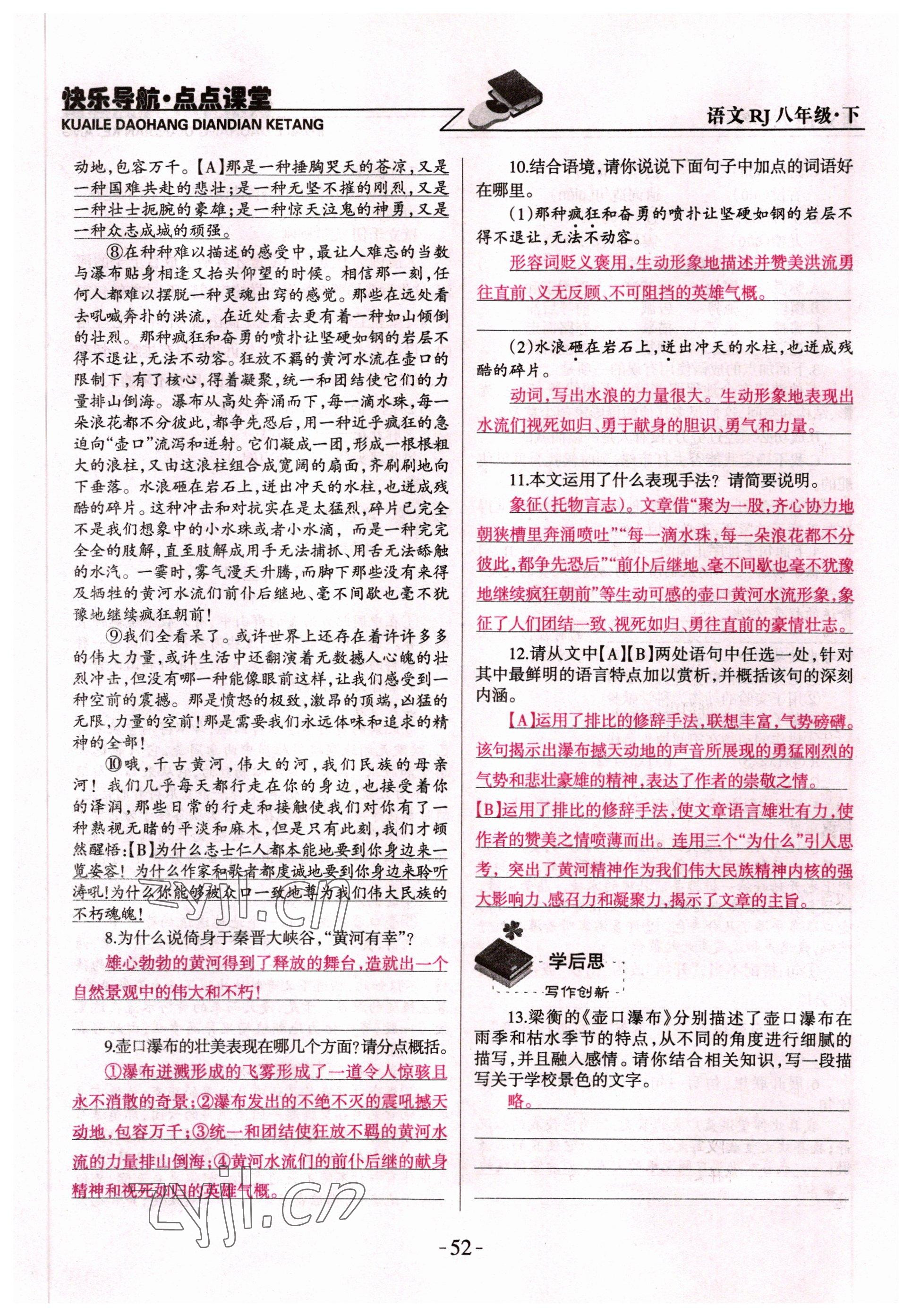 注:目前有些书本章节名称可能整理的还不是很完善,但都是按照顺序排列的,请同学们按照顺序仔细查找。练习册 2022年快乐导航点点课堂八年级语文下册人教版 答案主要是用来给同学们做完题方便对答案用的,请勿直接抄袭。