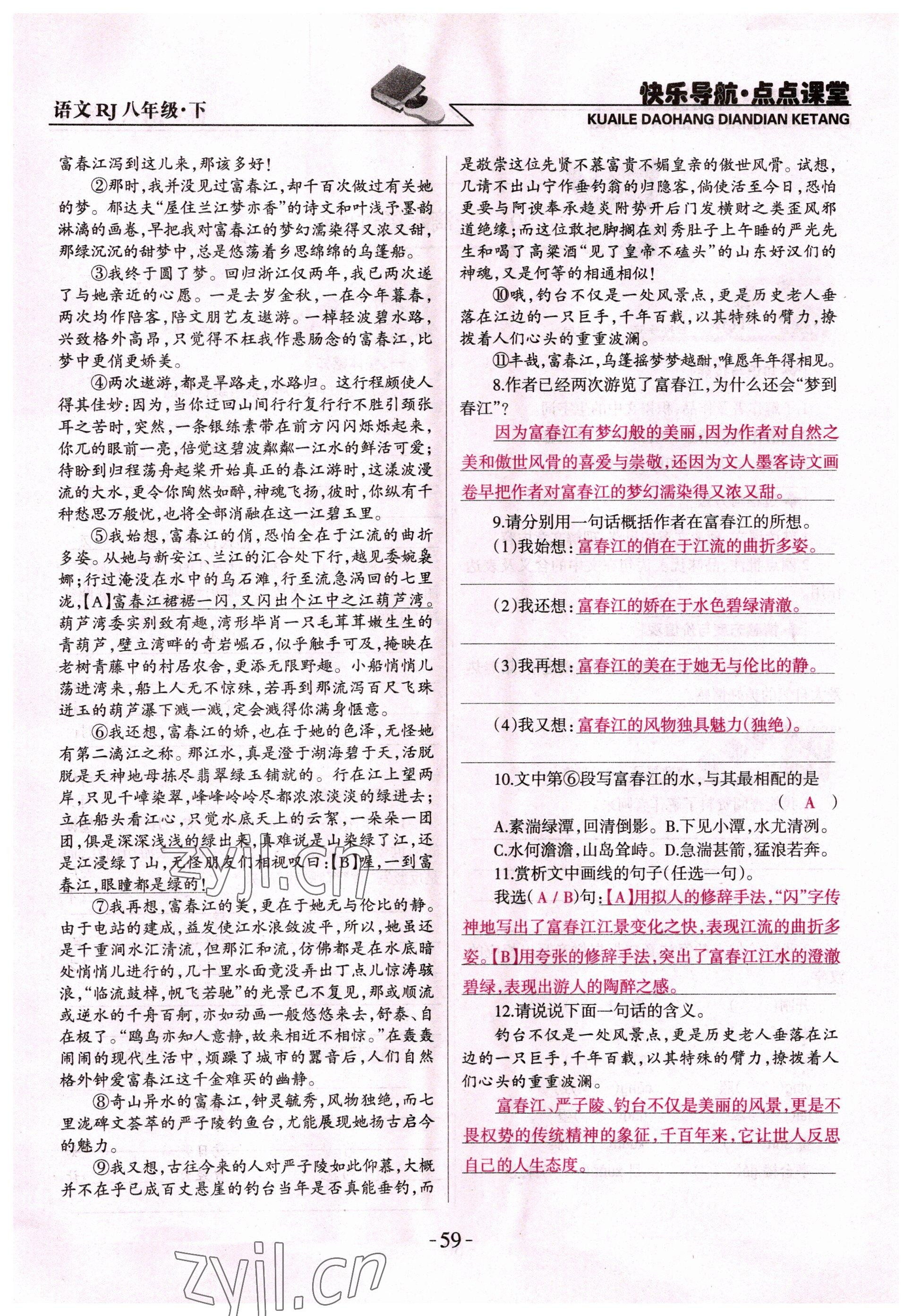 注:目前有些书本章节名称可能整理的还不是很完善,但都是按照顺序排列的,请同学们按照顺序仔细查找。练习册 2022年快乐导航点点课堂八年级语文下册人教版 答案主要是用来给同学们做完题方便对答案用的,请勿直接抄袭。