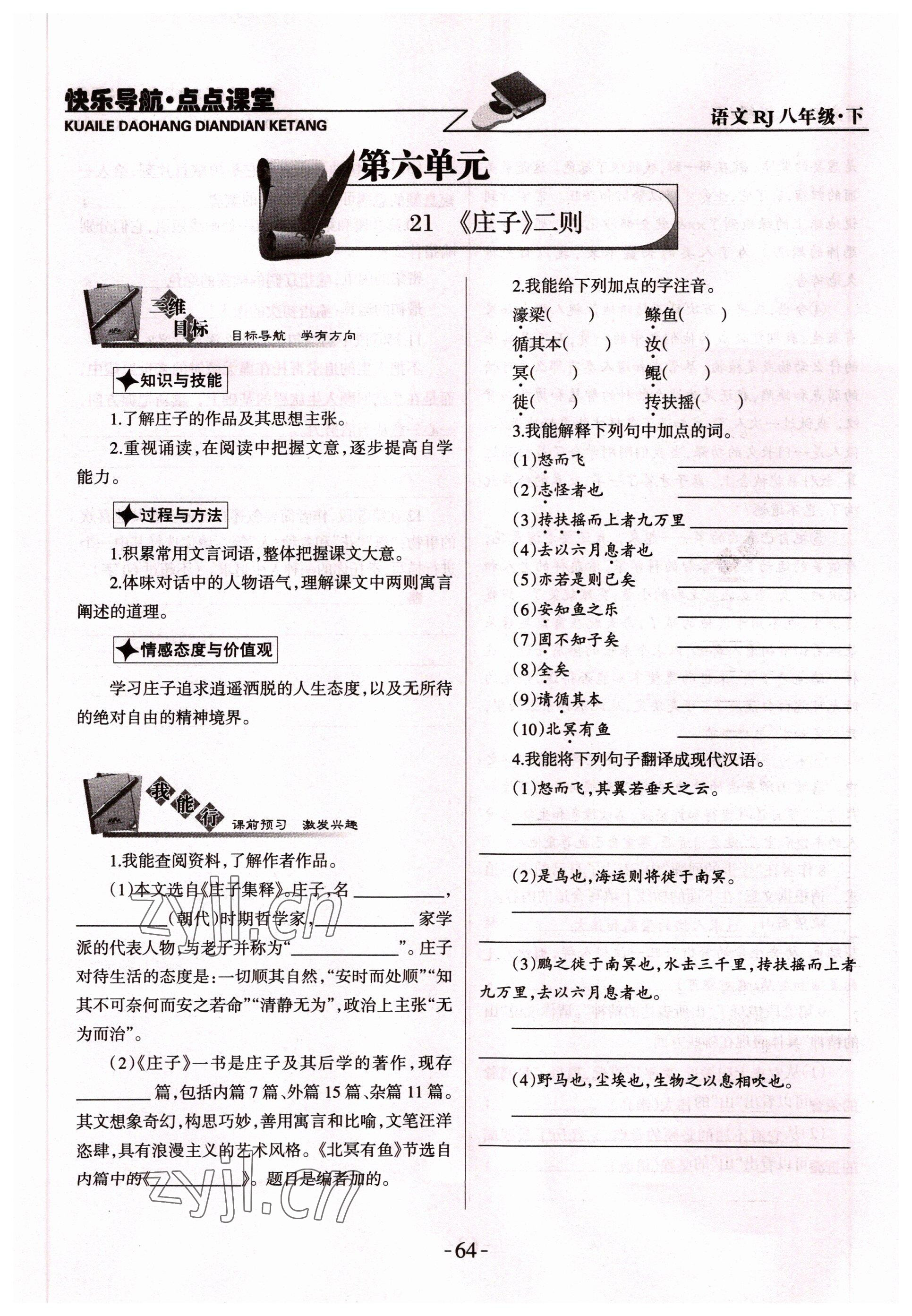 注:目前有些书本章节名称可能整理的还不是很完善,但都是按照顺序排列的,请同学们按照顺序仔细查找。练习册 2022年快乐导航点点课堂八年级语文下册人教版 答案主要是用来给同学们做完题方便对答案用的,请勿直接抄袭。