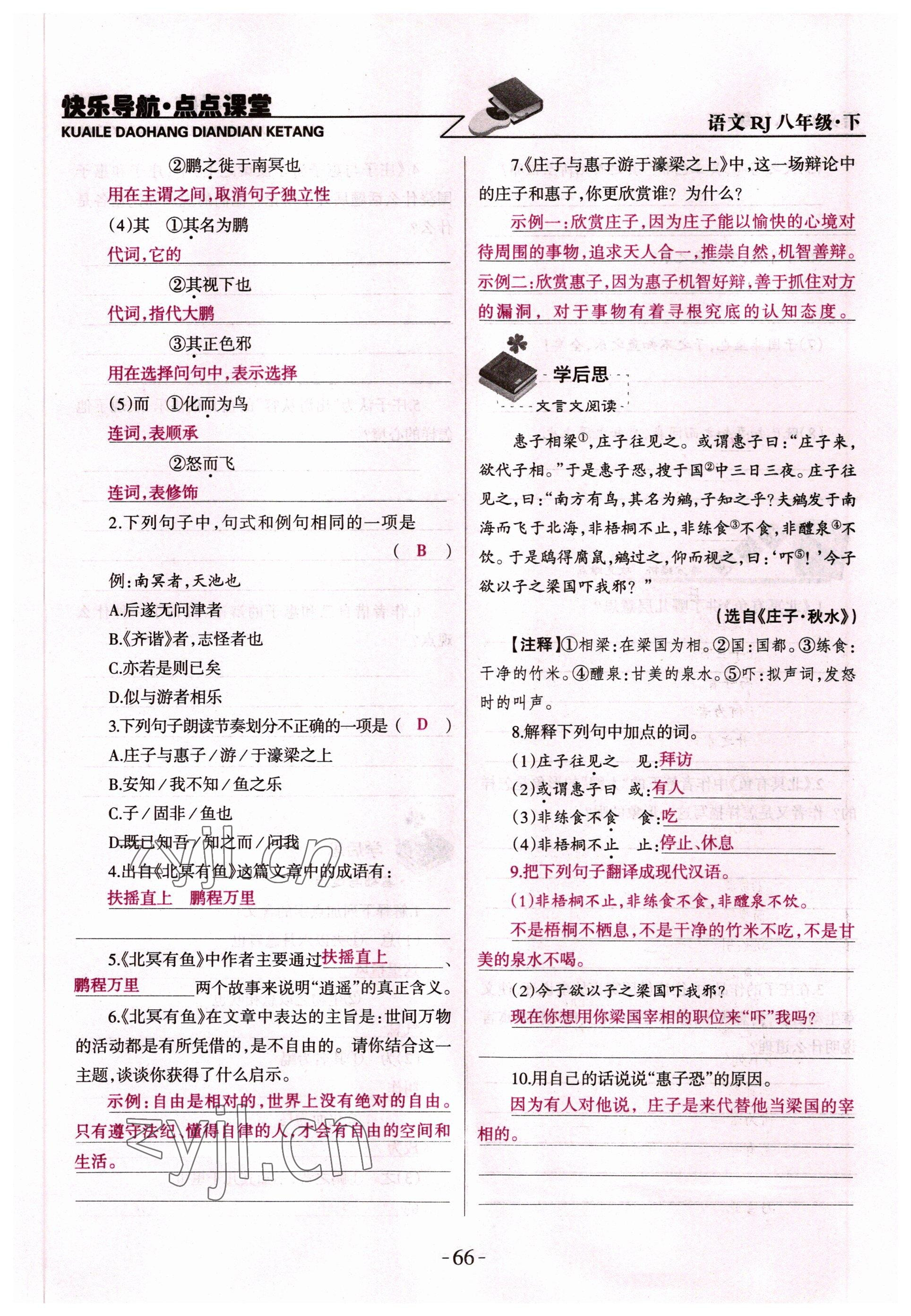 注:目前有些书本章节名称可能整理的还不是很完善,但都是按照顺序排列的,请同学们按照顺序仔细查找。练习册 2022年快乐导航点点课堂八年级语文下册人教版 答案主要是用来给同学们做完题方便对答案用的,请勿直接抄袭。