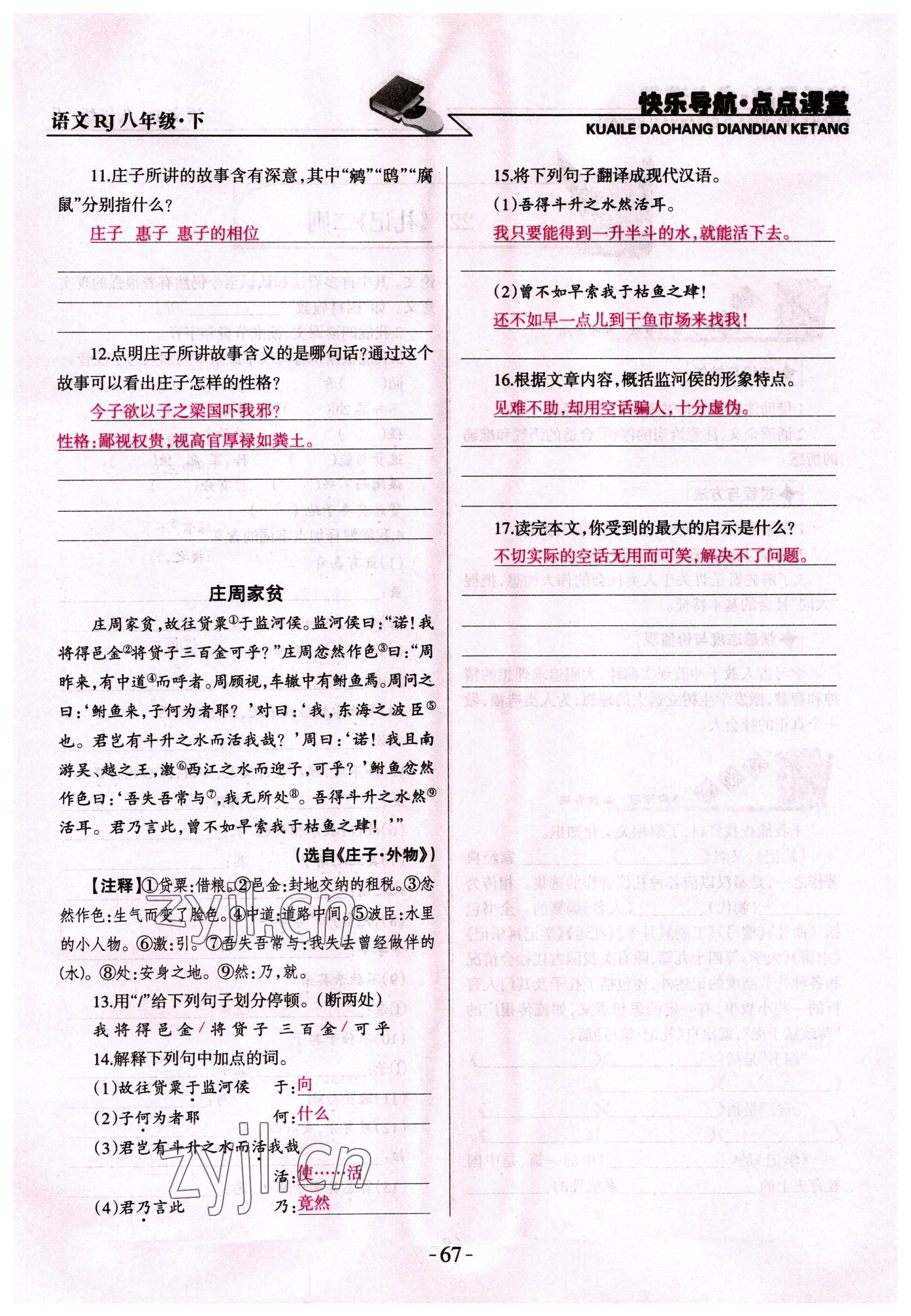注:目前有些书本章节名称可能整理的还不是很完善,但都是按照顺序排列的,请同学们按照顺序仔细查找。练习册 2022年快乐导航点点课堂八年级语文下册人教版 答案主要是用来给同学们做完题方便对答案用的,请勿直接抄袭。