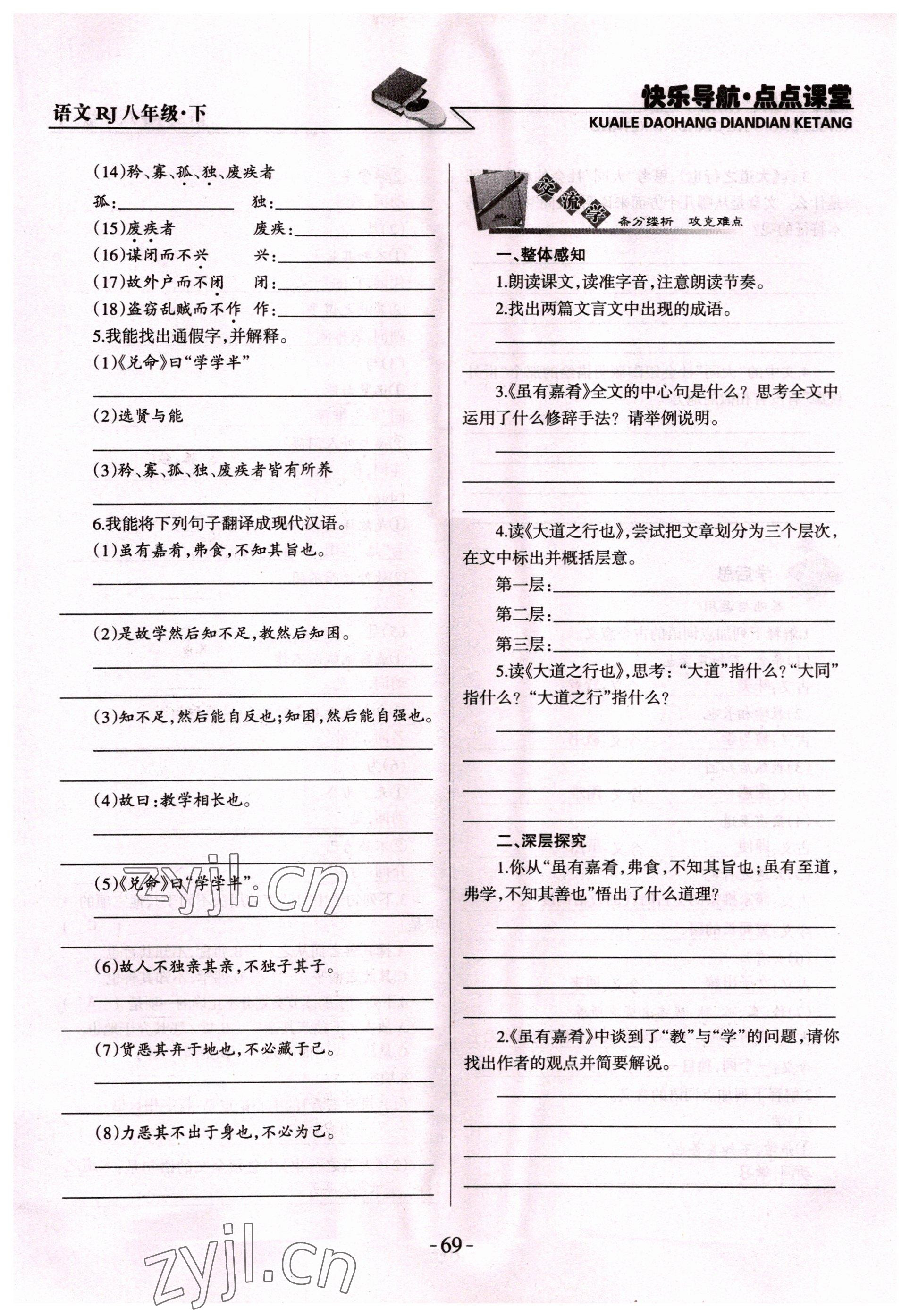注:目前有些书本章节名称可能整理的还不是很完善,但都是按照顺序排列的,请同学们按照顺序仔细查找。练习册 2022年快乐导航点点课堂八年级语文下册人教版 答案主要是用来给同学们做完题方便对答案用的,请勿直接抄袭。