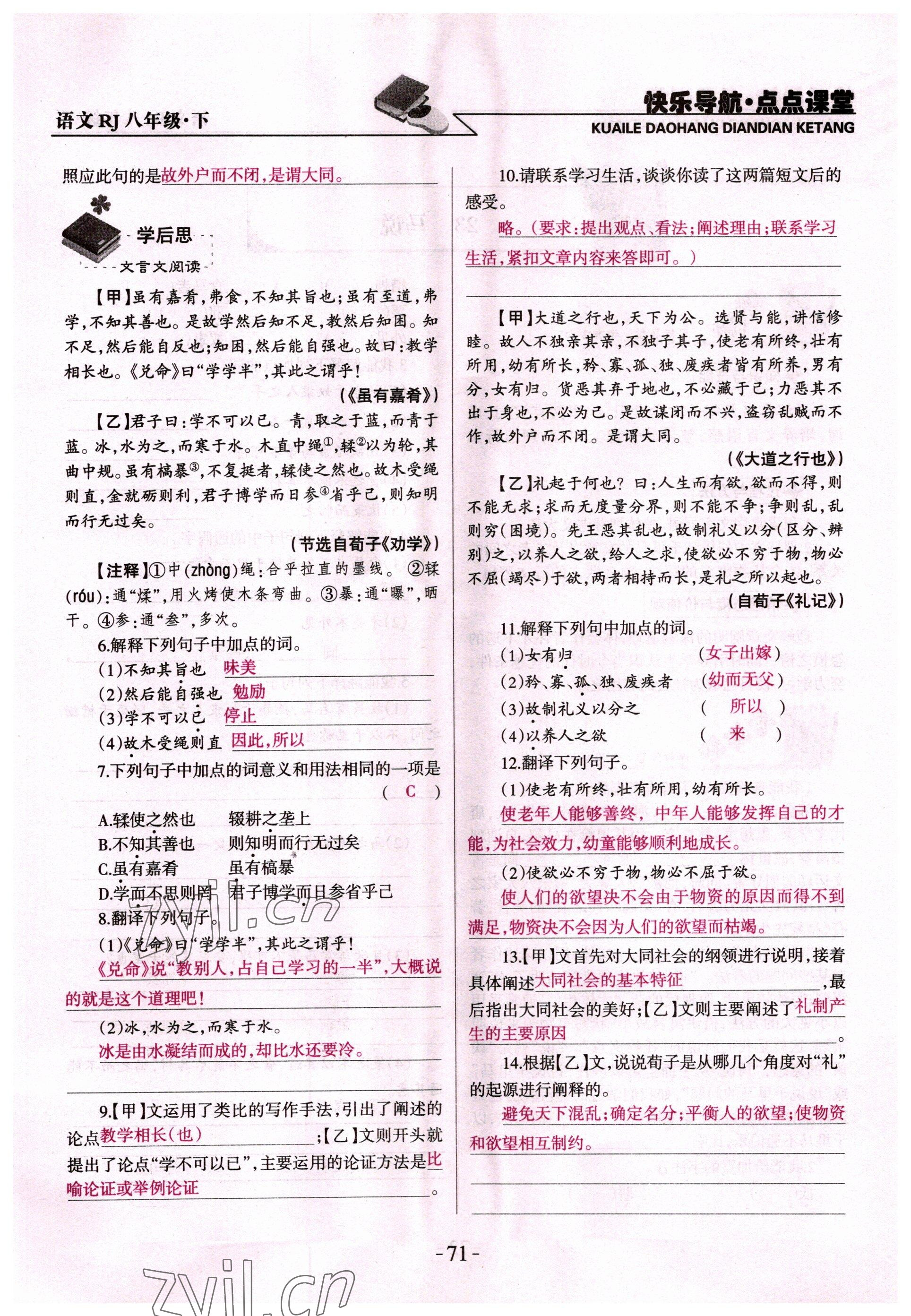 注:目前有些书本章节名称可能整理的还不是很完善,但都是按照顺序排列的,请同学们按照顺序仔细查找。练习册 2022年快乐导航点点课堂八年级语文下册人教版 答案主要是用来给同学们做完题方便对答案用的,请勿直接抄袭。