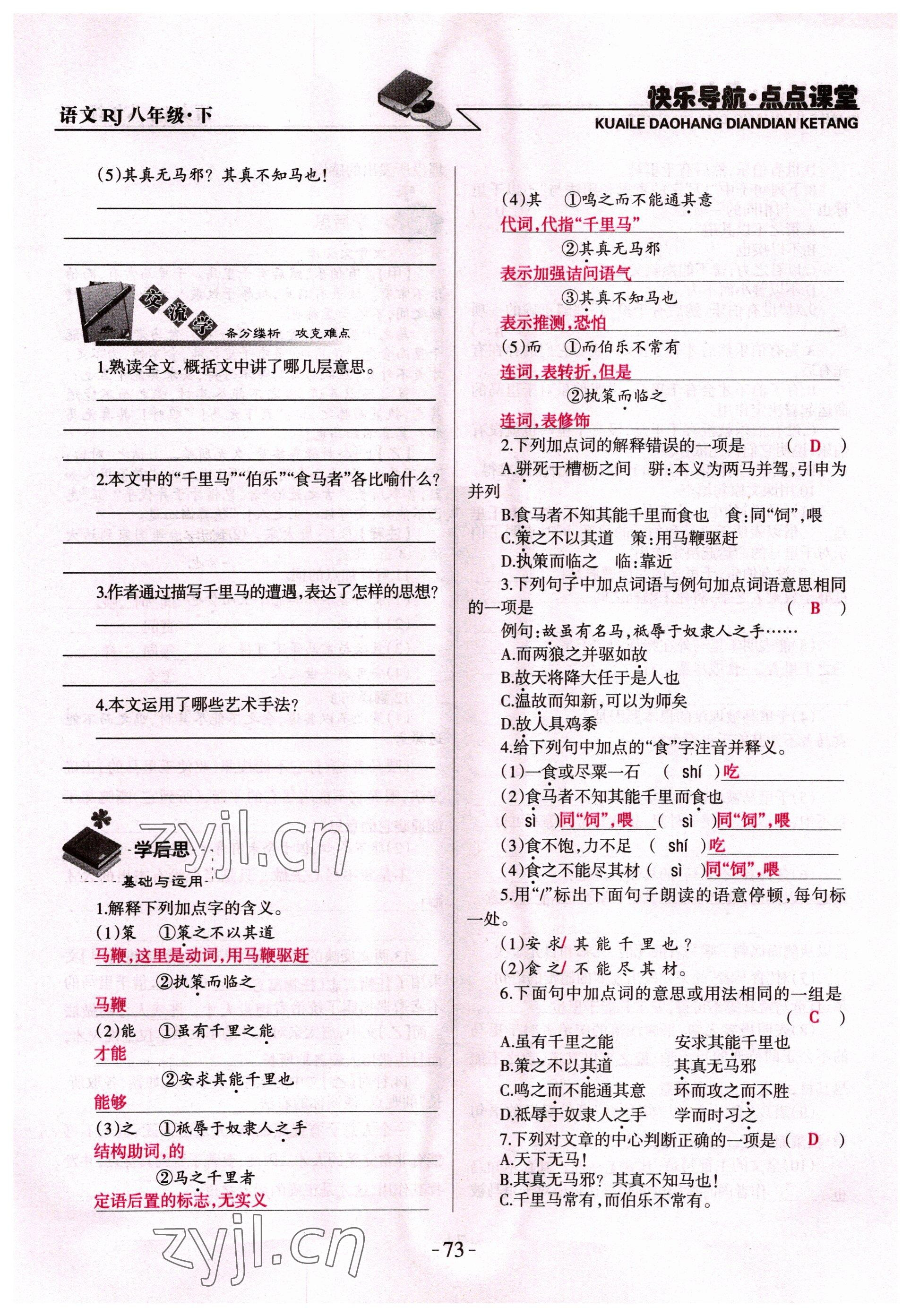 注:目前有些书本章节名称可能整理的还不是很完善,但都是按照顺序排列的,请同学们按照顺序仔细查找。练习册 2022年快乐导航点点课堂八年级语文下册人教版 答案主要是用来给同学们做完题方便对答案用的,请勿直接抄袭。