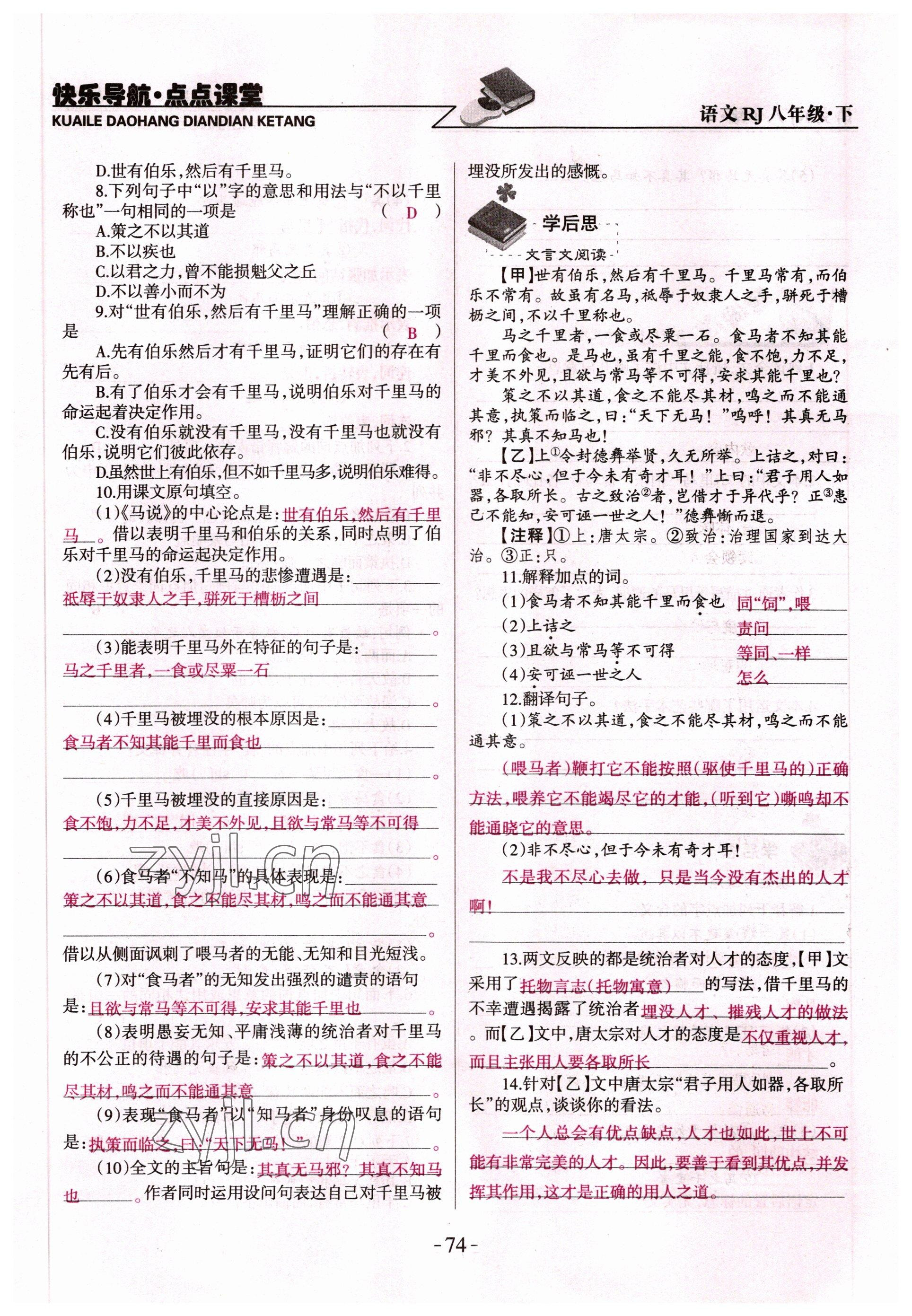 注:目前有些书本章节名称可能整理的还不是很完善,但都是按照顺序排列的,请同学们按照顺序仔细查找。练习册 2022年快乐导航点点课堂八年级语文下册人教版 答案主要是用来给同学们做完题方便对答案用的,请勿直接抄袭。