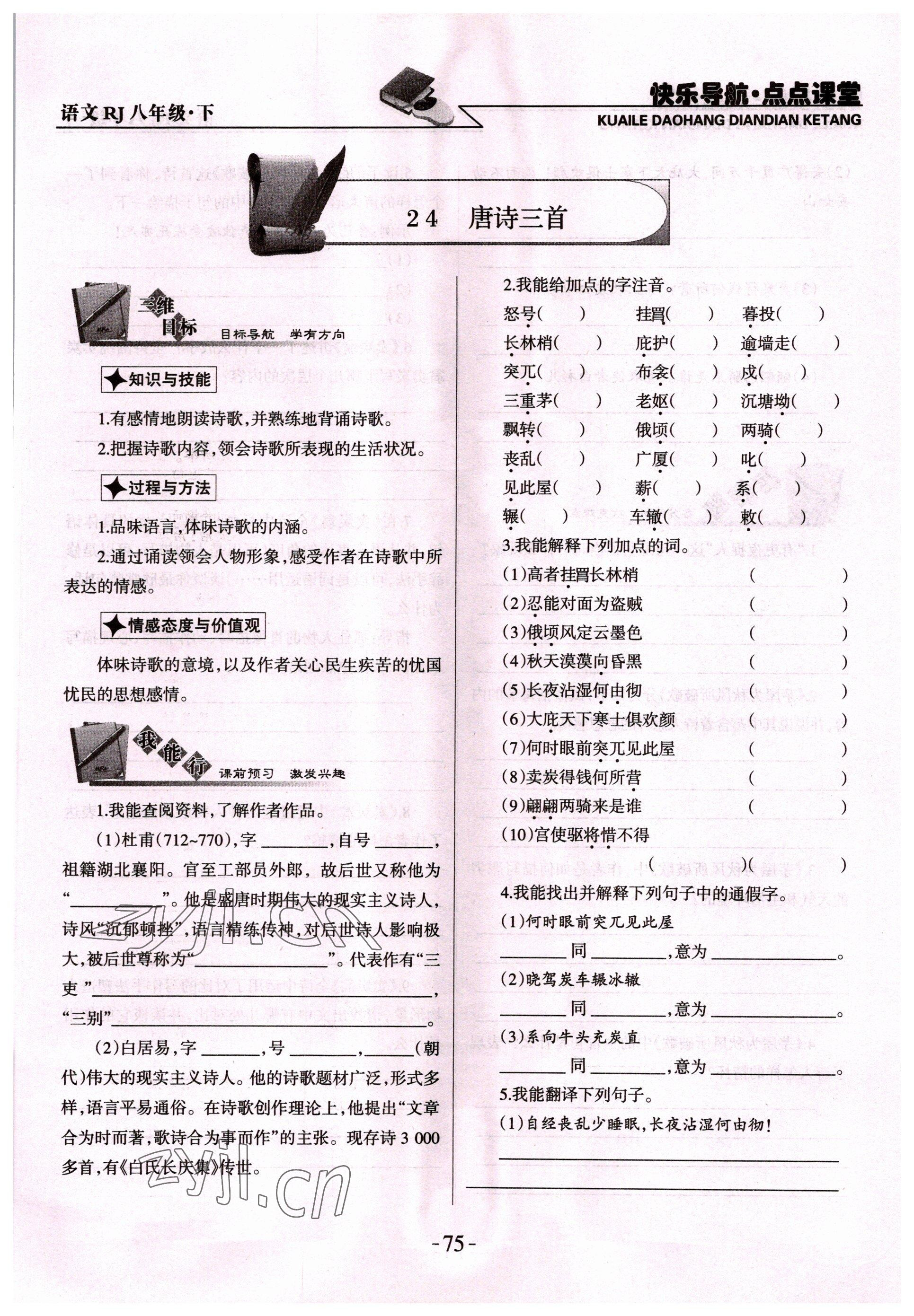 注:目前有些书本章节名称可能整理的还不是很完善,但都是按照顺序排列的,请同学们按照顺序仔细查找。练习册 2022年快乐导航点点课堂八年级语文下册人教版 答案主要是用来给同学们做完题方便对答案用的,请勿直接抄袭。