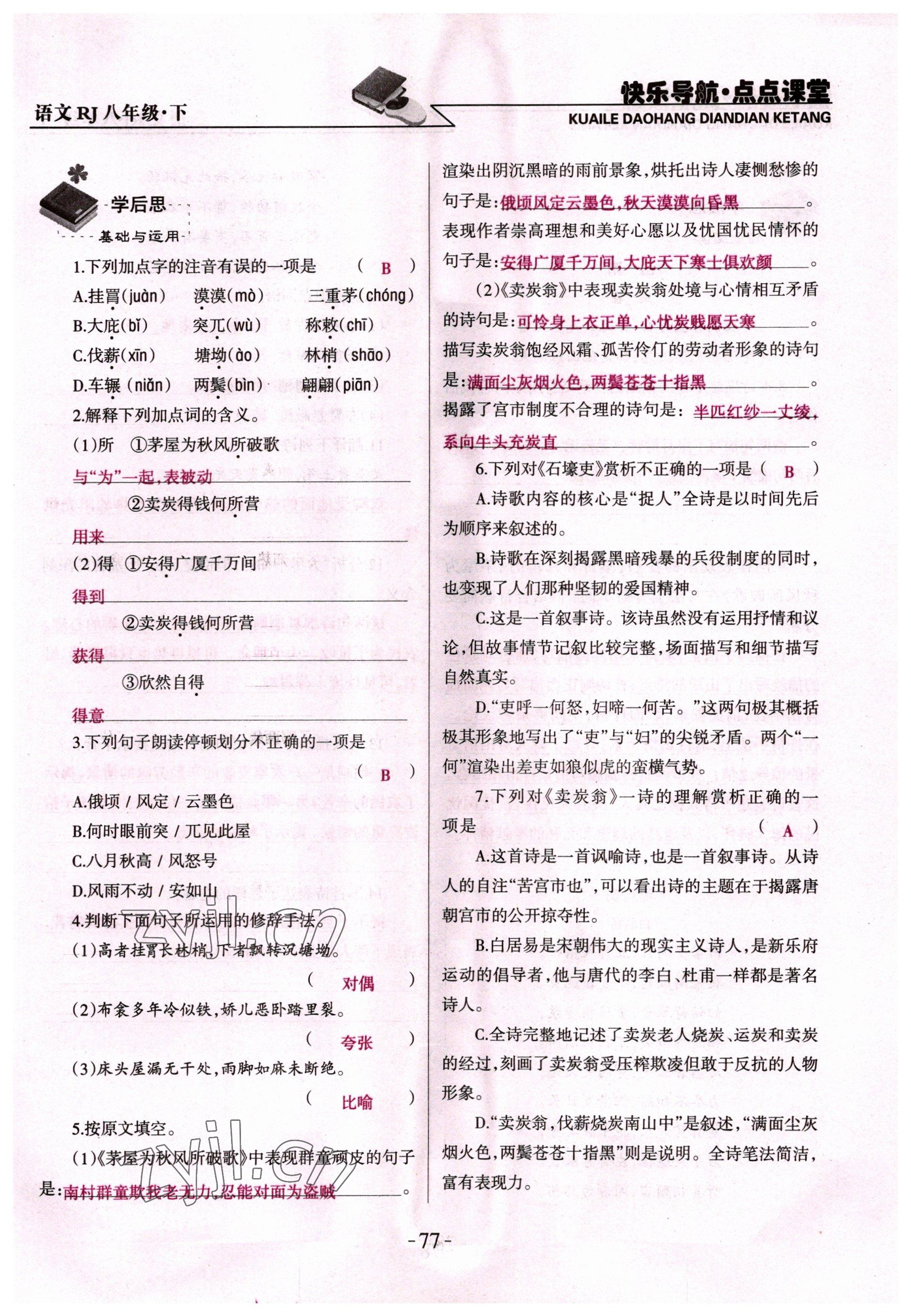 注:目前有些书本章节名称可能整理的还不是很完善,但都是按照顺序排列的,请同学们按照顺序仔细查找。练习册 2022年快乐导航点点课堂八年级语文下册人教版 答案主要是用来给同学们做完题方便对答案用的,请勿直接抄袭。