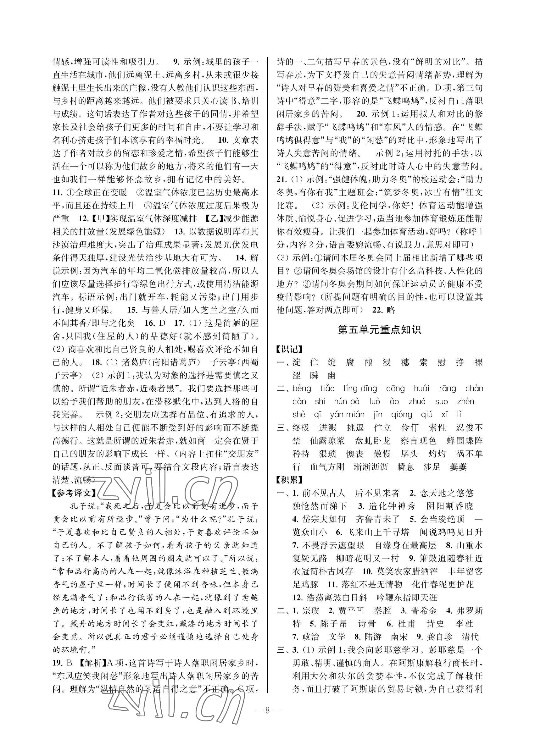 注:目前有些书本章节名称可能整理的还不是很完善,但都是按照顺序排列的,请同学们按照顺序仔细查找。练习册 2022年金试卷天津科学技术出版社七年级语文下册人教版 答案主要是用来给同学们做完题方便对答案用的,请勿直接抄袭。